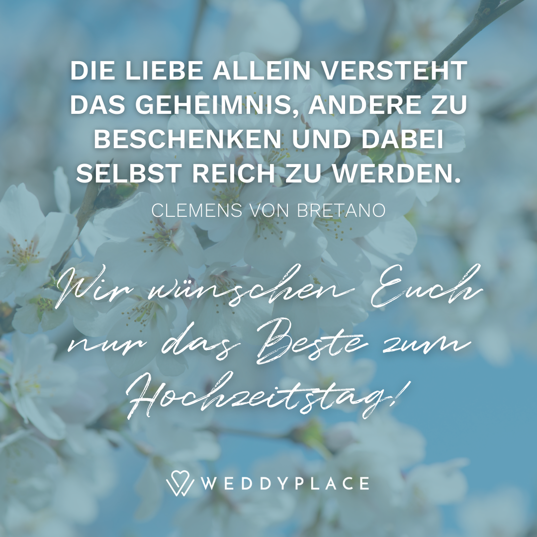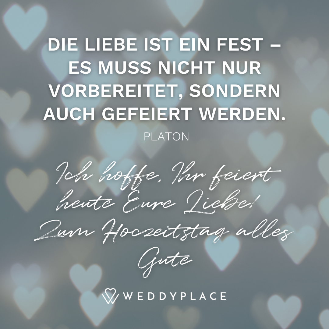Jedes Paar freut sich sicherlich sehr über Glückwünsche zum Hochzeitstag von Familie und Freunden. Darum haben wir für Euch ein paar Ideen für tolle Zitate, Wünsche und schöne Sprüche zum Hochzeitstag gesammelt mit denen Ihr garantiert großartige Glückwunschkarten schreiben werdet.