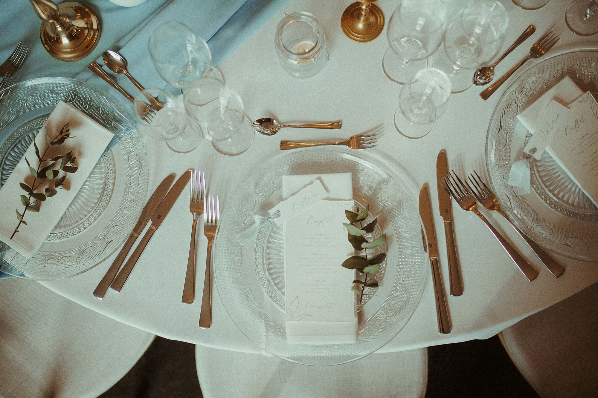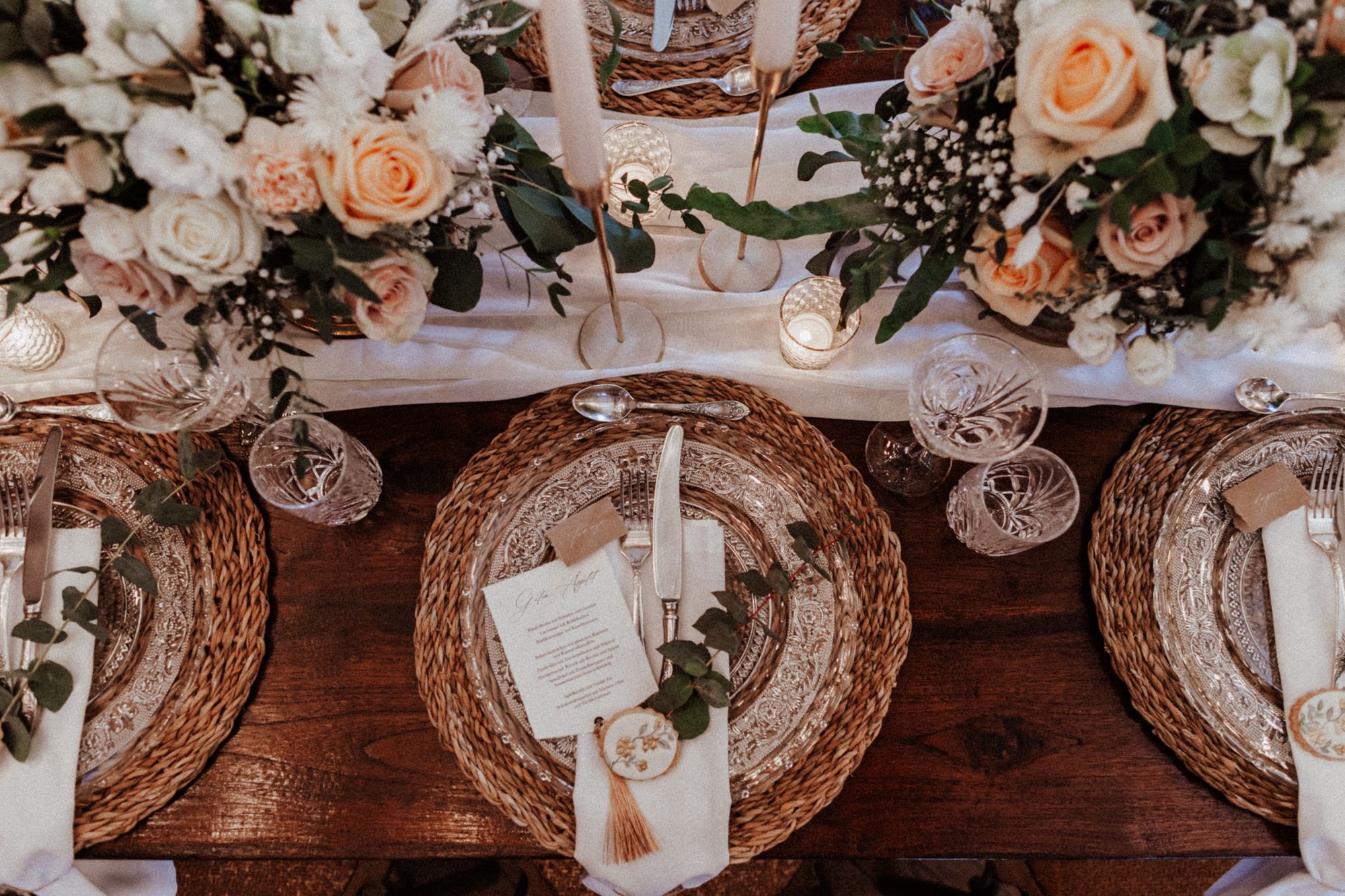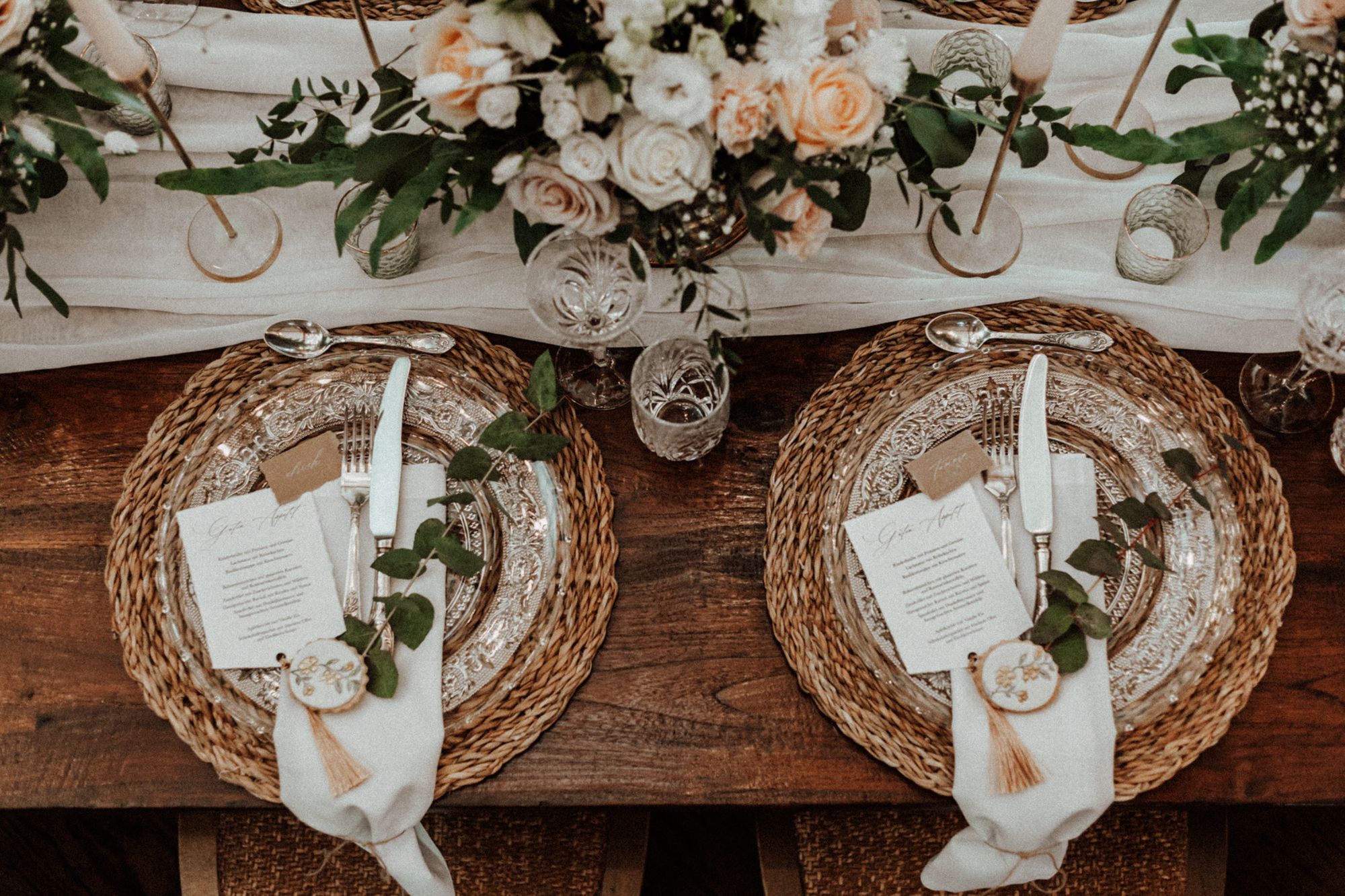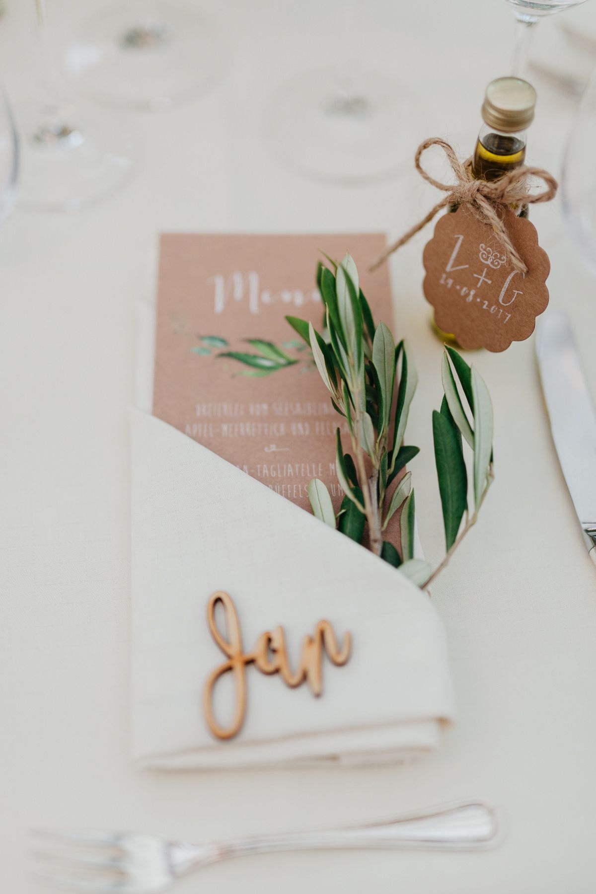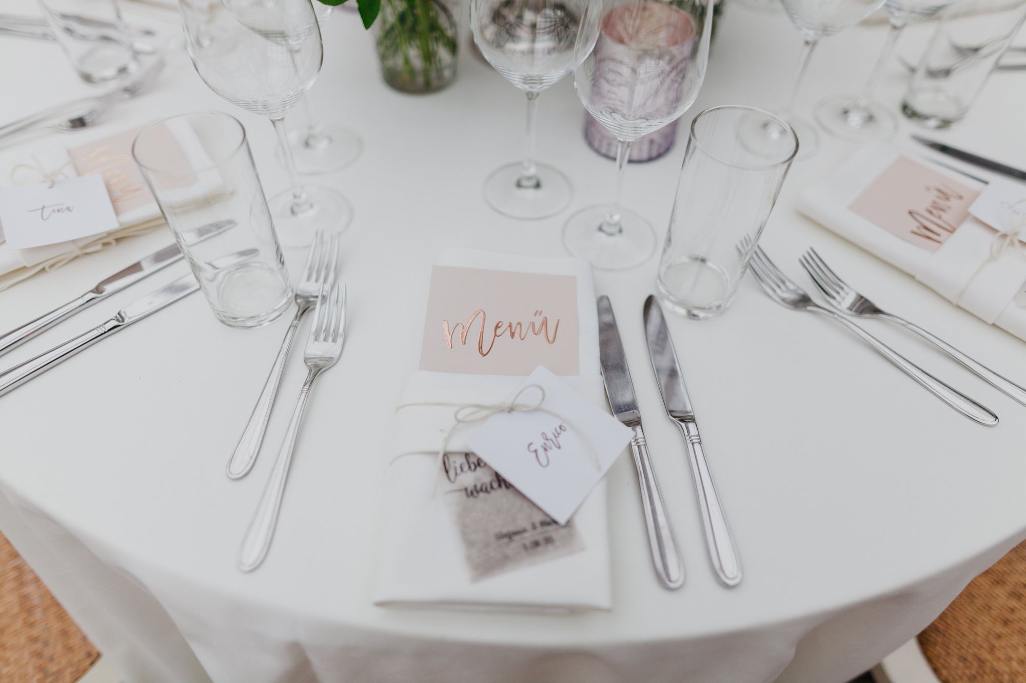 Die Falttechnik und Accessoires hängen auch davon ab, wie viel Ihr bei einem einzelnen Gedeck integrieren möchtet. So lohnt sich beispielsweise eine einfachere Technik mit weniger Accessoires, wenn Ihr zusätzlich eine Süßigkeit und eine Karte mit dem Menü auf jeden Teller legen möchtet. Testet gerne zu Hause oder eventuell bei Eurer Location verschiedene Varianten - schließlich soll die Tafel auch nicht zu überladen wirken.