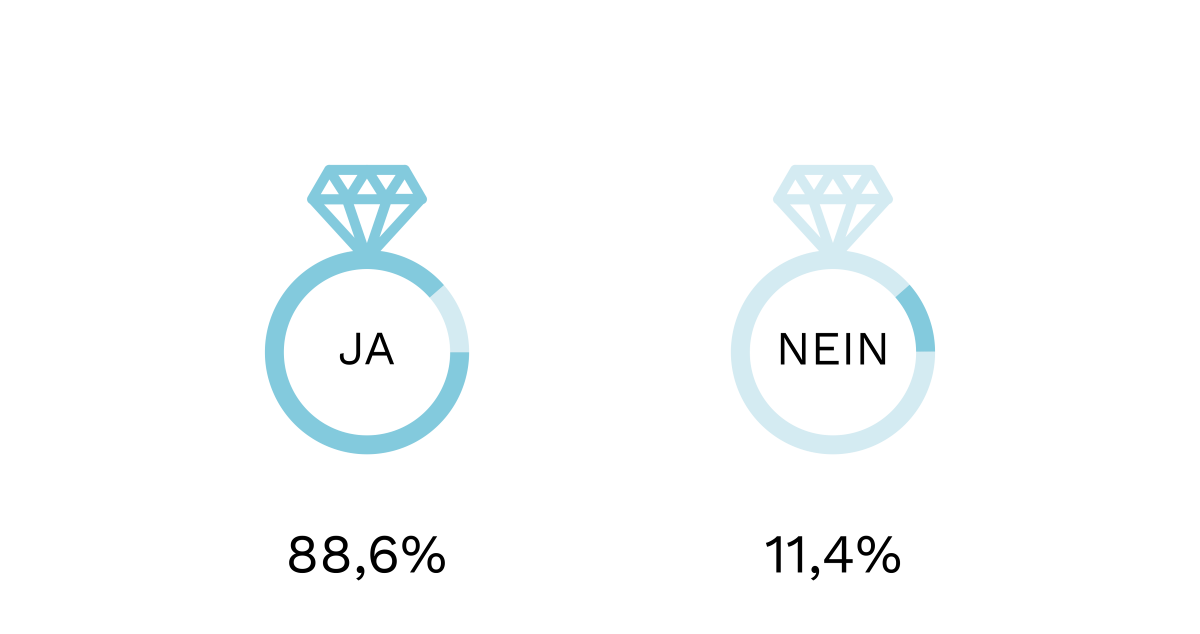 Nur knapp 40 Prozent der Paare verkünden, teilen oder sharen in Neudeutsch die Vorfreude in einem Post oder Tweet in den sozialen Medien. Womöglich hält es hier eine Mehrheit immer noch treu mit der persönlichen Verkündung im Familien- und Freundeskreis. Schön!