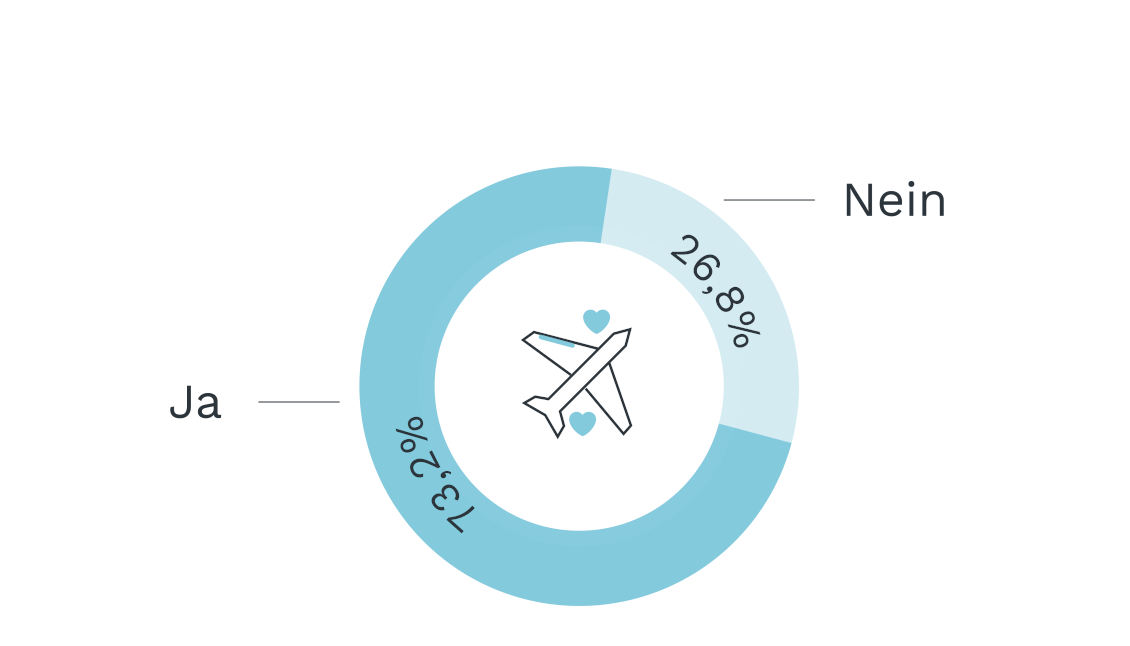 Auch hier setzt sich der Trend zum Festhalten an geschätzten Traditionen nachhaltig fort. Drei Viertel aller Brautpaare starten direkt oder nahe dem Hochzeitstag in die gemeinsamen Flitterwochen, so es die aktuellen Corona-Umstände zulassen. Andernfalls gilt: Aufgeschoben ist nicht aufgehoben! Lediglich 26,8 Prozent verzichten auf dieses schöne Ritual.