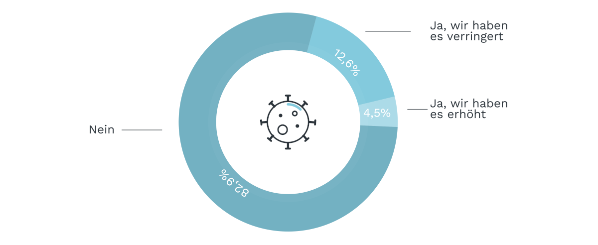 Nicht ganz so stabil wie in der Budgetfrage oder bei der Frage nach dem Veranstaltungsort finden sich die Antworten auf den Umfang der jeweiligen Gästeliste wieder. Etwas mehr als ein Drittel der Paare sah sich gezwungen, die Gästeanzahl unter den schwierigen Bedingungen nach unten zu korrigieren. So konnte oder kann leider nicht mehr jeder Gast teilnehmen, der ursprünglich mal eingeladen war. Immerhin 64,6 Prozent der Paare allerdings halten auch hier an der Ursprungsplanung fest und wollen all ihre Lieben zum großen Tag um sich haben.