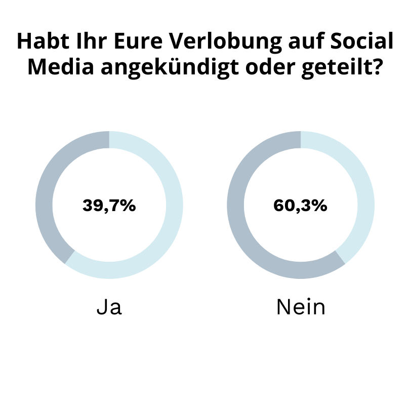 In dem Maße, wie der Wunsch nach mehr klassischen Rollenbildern, Romantik und Intimität beim Heiratsantrag wächst, scheint ein anderer Wunsch hingegen leicht abzunehmen. Das wirkt zumindest auf den ersten Blick logisch. Die Rede ist vom Teilen der freudigen Nachricht der Verlobung in sozialen Medien, was -3,8 Prozent der Brautpaare weniger als im Vorjahr zelebrieren.