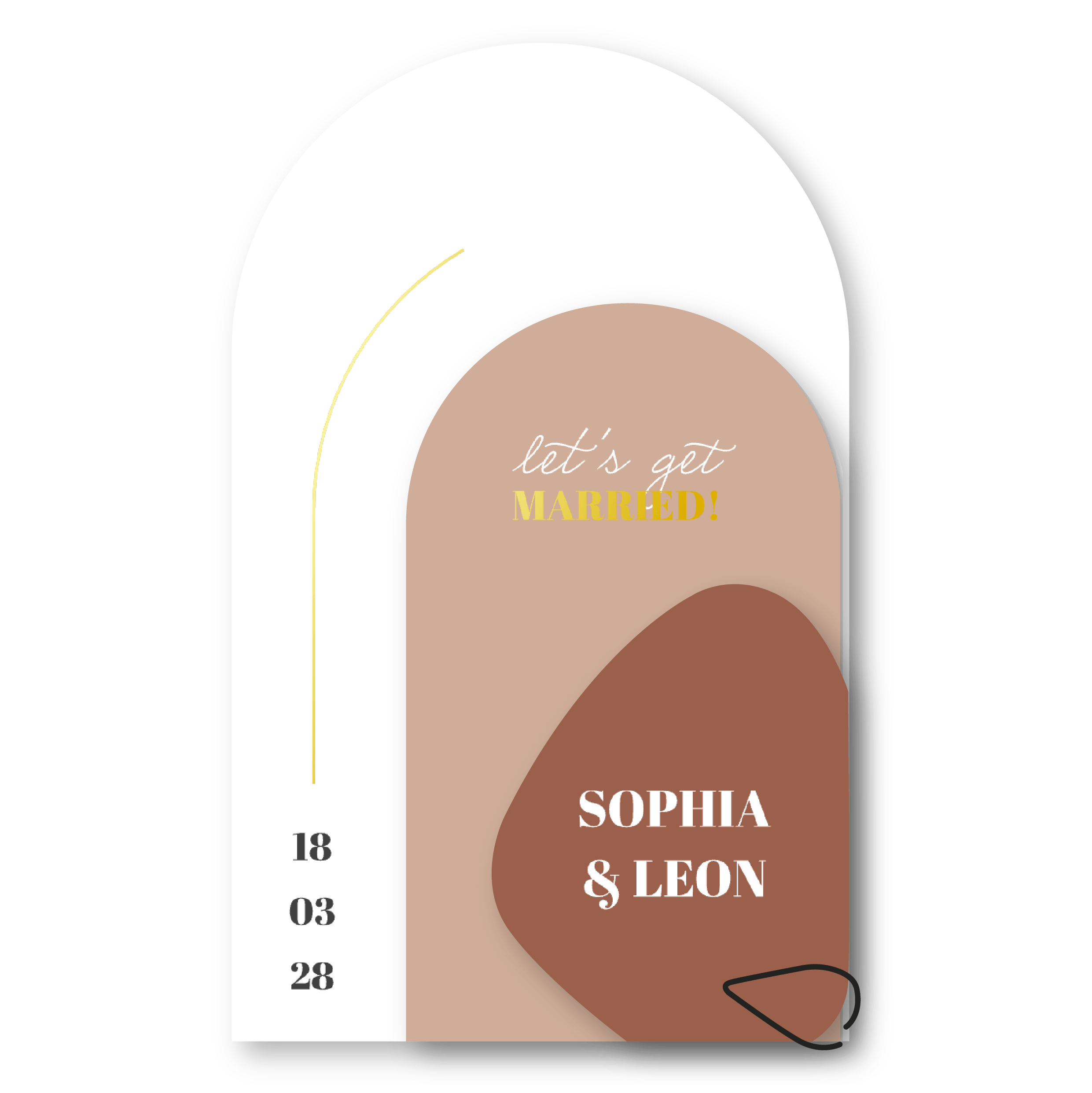 Diese cleane, moderne Stapelkarte aus organischen Formen ist für Eure Hochzeit perfekt. Edle Details mit eingestanzter Goldfolie verzaubern nicht nur Euch, sondern auch Eure Gäste.