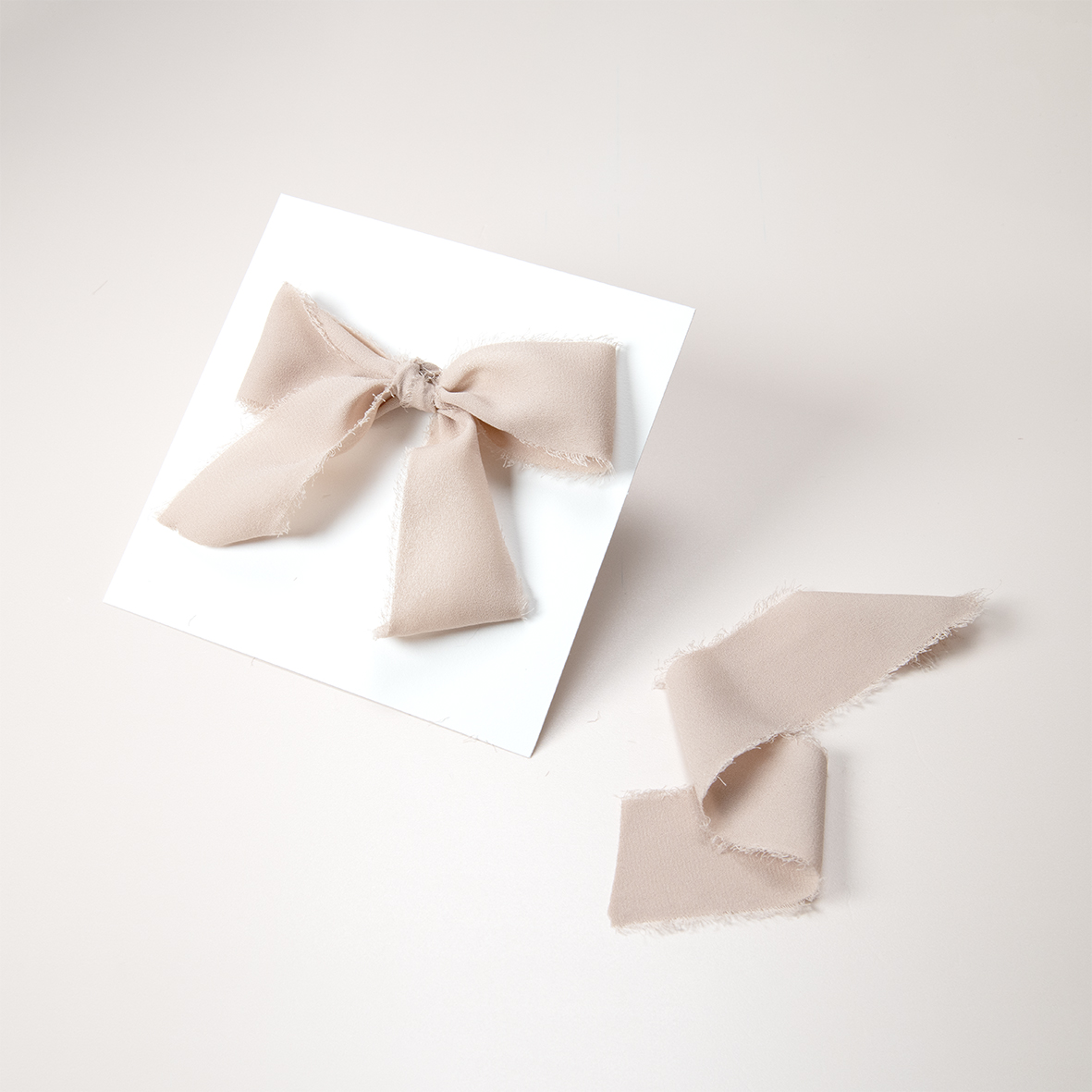 Beige chiffon zijden lint (20 meter). Je ontvangt 2 rollen van 10 meter. Geschikt om ca. 40 kaarten mee te versieren.