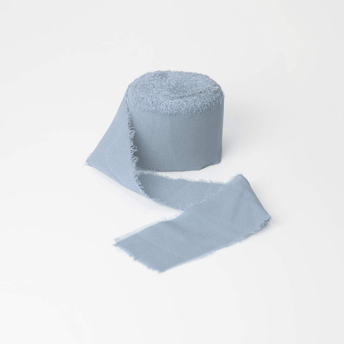 Blauwgrijs chiffon zijden lint (20 meter). Je ontvangt 2 rollen van 10 meter. Geschikt om ca. 40 kaarten mee te versieren.