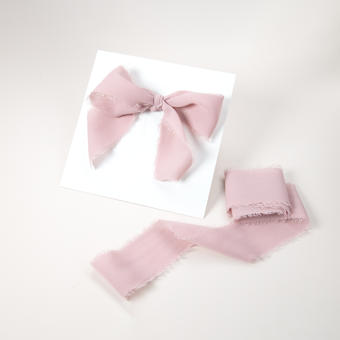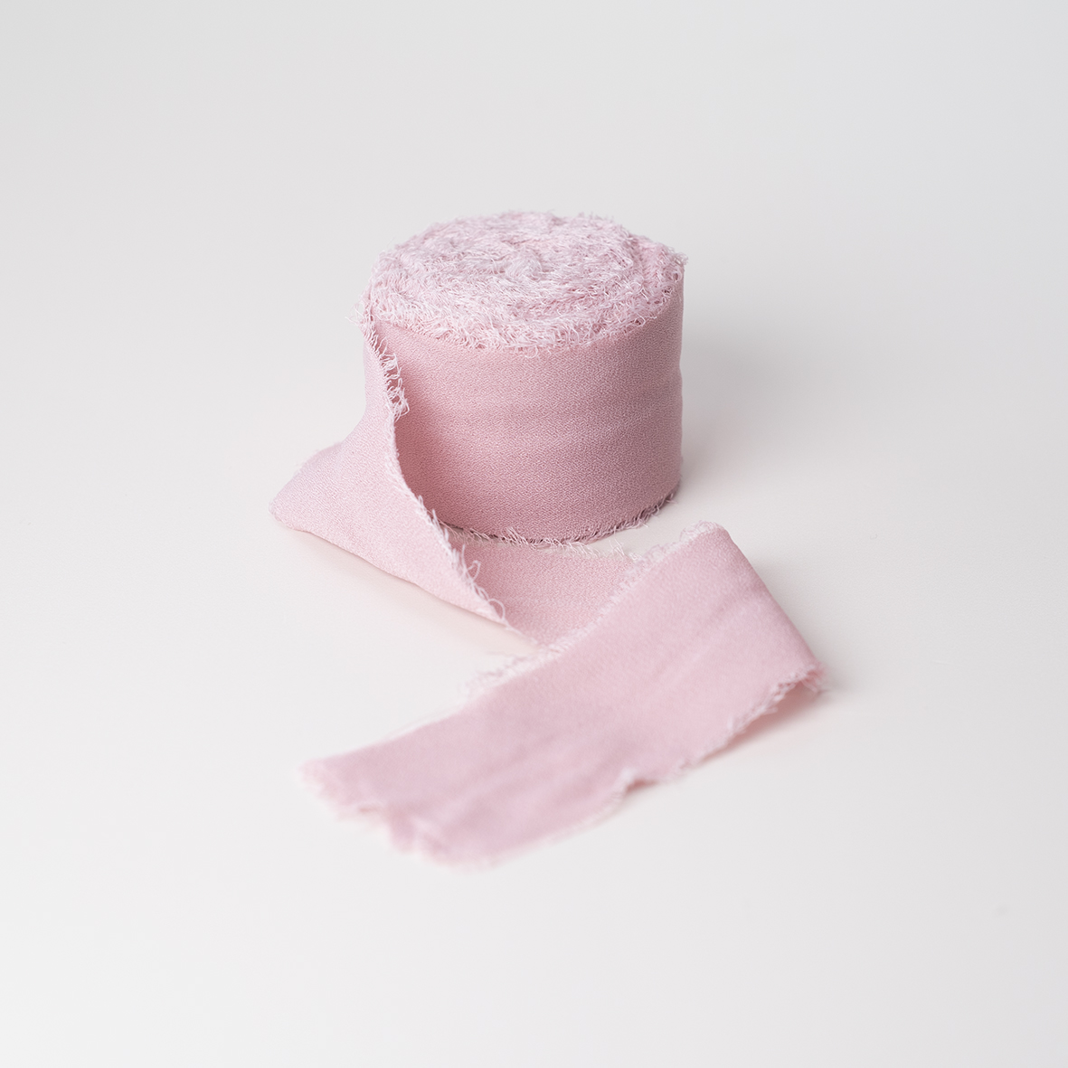 Oudroze chiffon zijden lint (20 meter). Je ontvangt 2 rollen van 10 meter. Geschikt om ca. 40 kaarten mee te versieren.