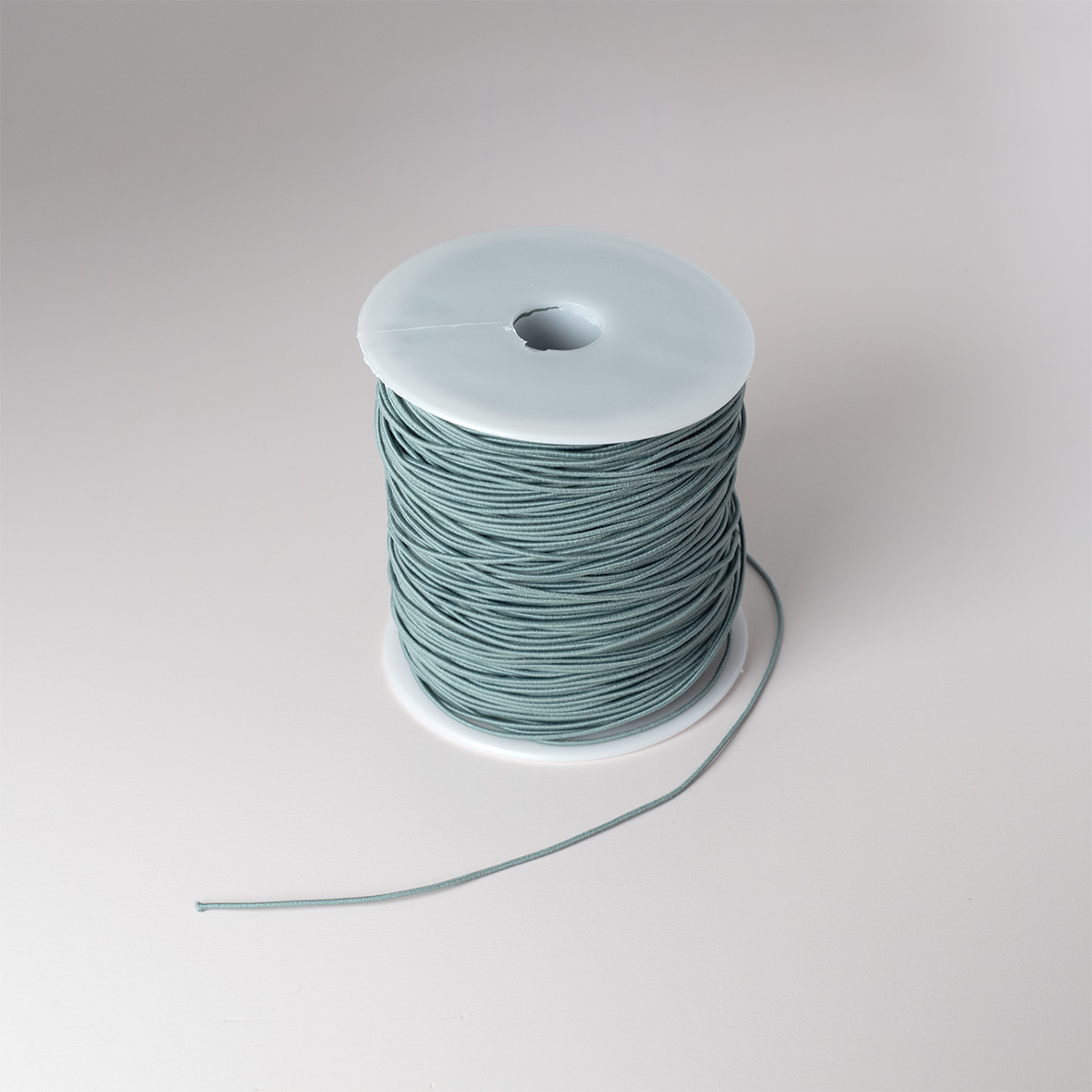 Saliegroen elastisch koord (10 meter) van 1 mm dik. Geschikt om ca. 25 kaarten mee te versieren.