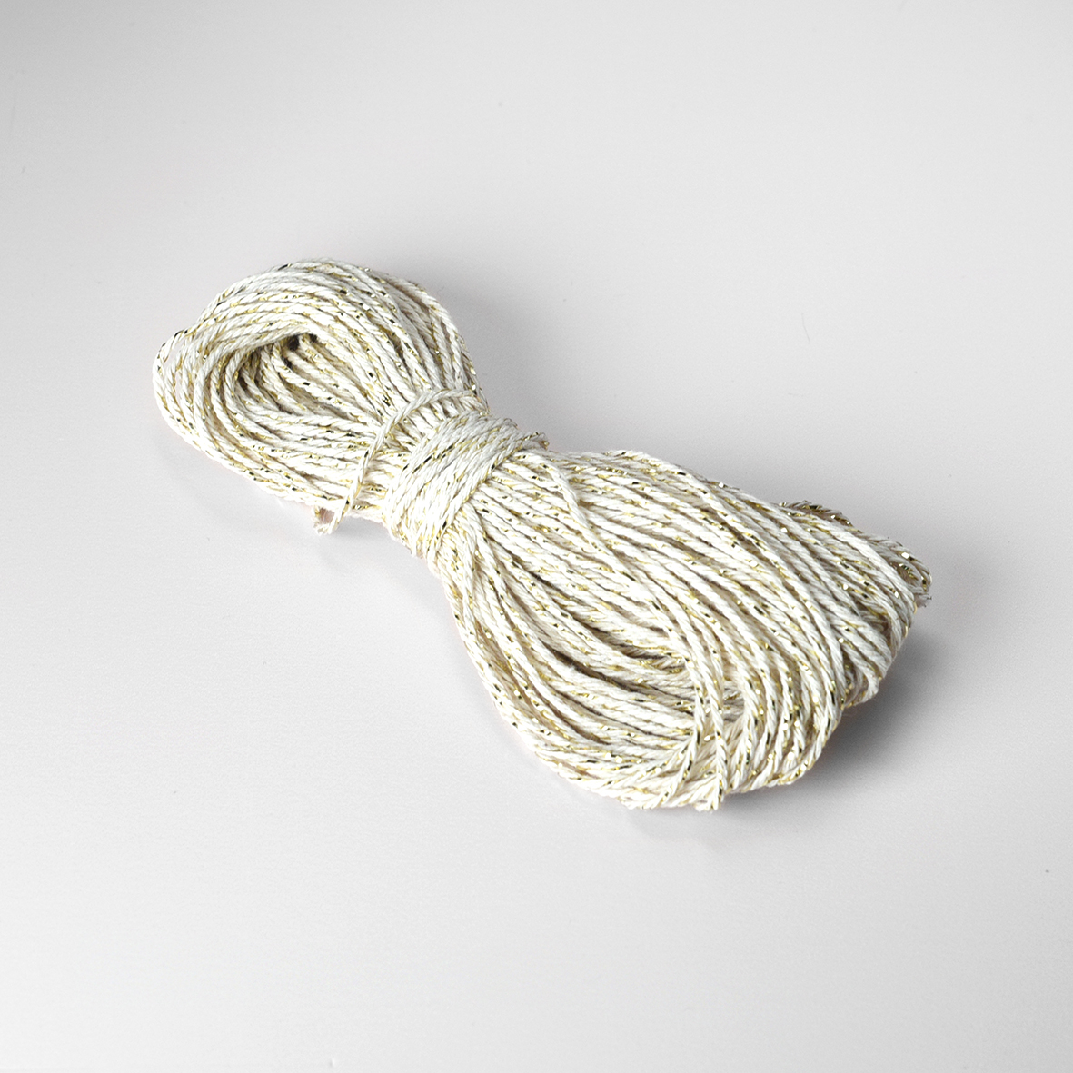 Goud-wit touw (20 meter). Geschikt om ca. 25 kaarten mee te versieren.