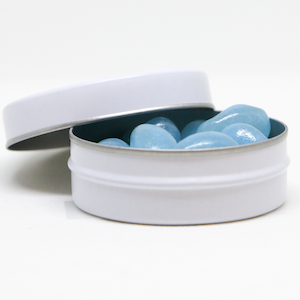 Leuk wit blikje waar je snoepjes in kunt doen. Ideaal als geboortebedankje, of kadootje na communie of trouwen. Het potje is 2 cm hoog en heeft een diameter van 5 cm en wordt leeg geleverd.