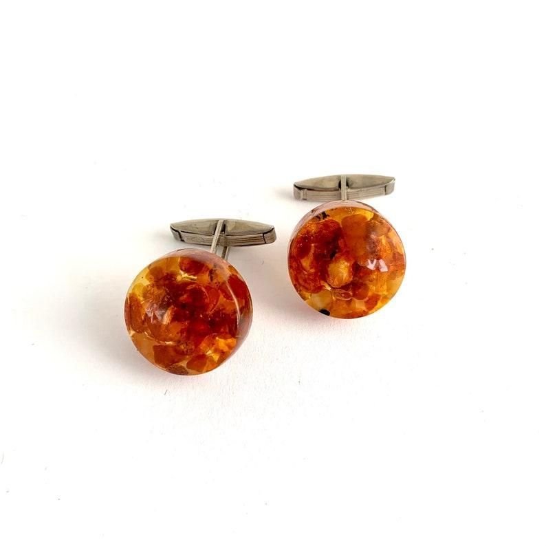 - Manschettenknöpfe aus Bernstein mit eingraviertem Namen