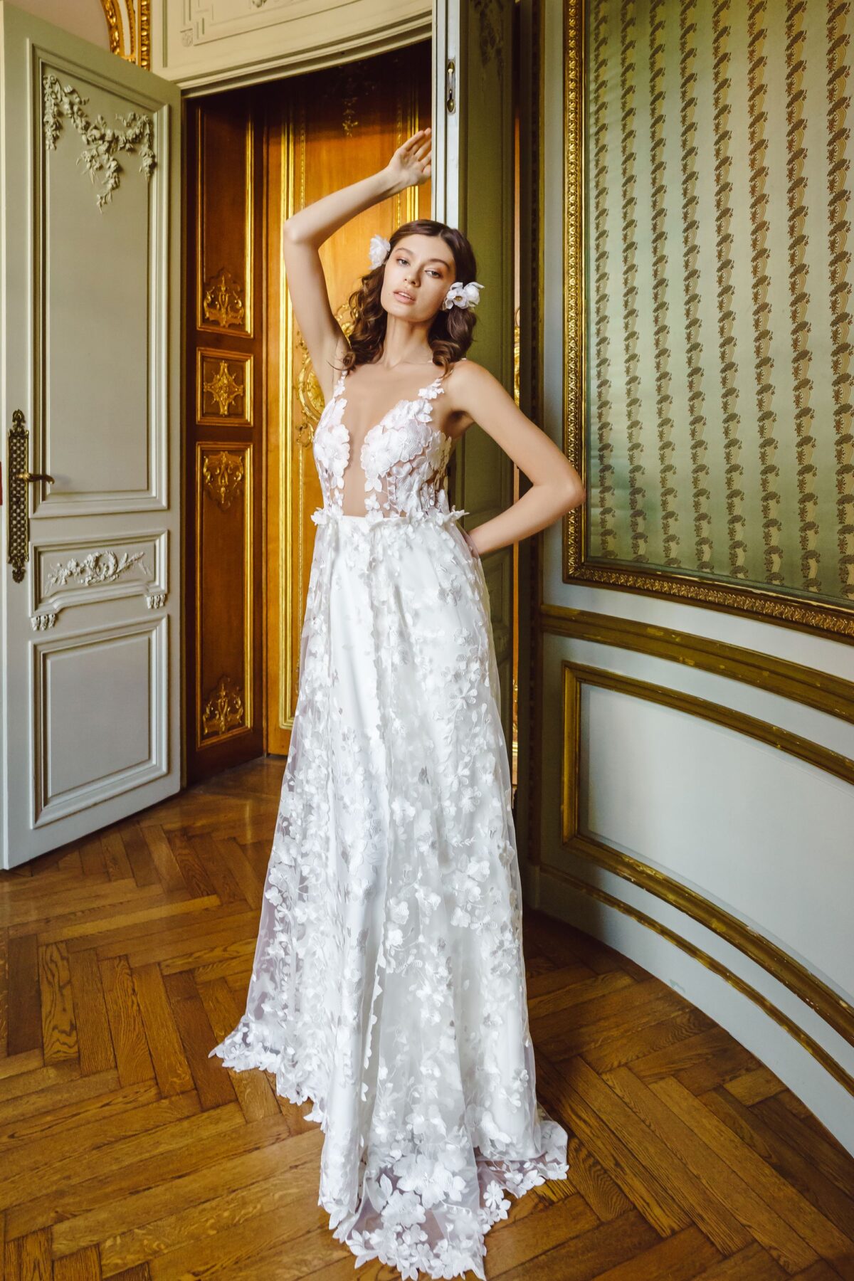 3D-Blumen lassen Dein Brautkleid lebendig und verspielt wirken, indem sie einen dreidimensionalen Effekt erzeugen. Wenn Du von einem märchenhaften Auftritt träumst, sind 3D-Blumen genau das Richtige für Dich!