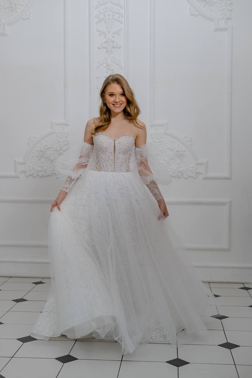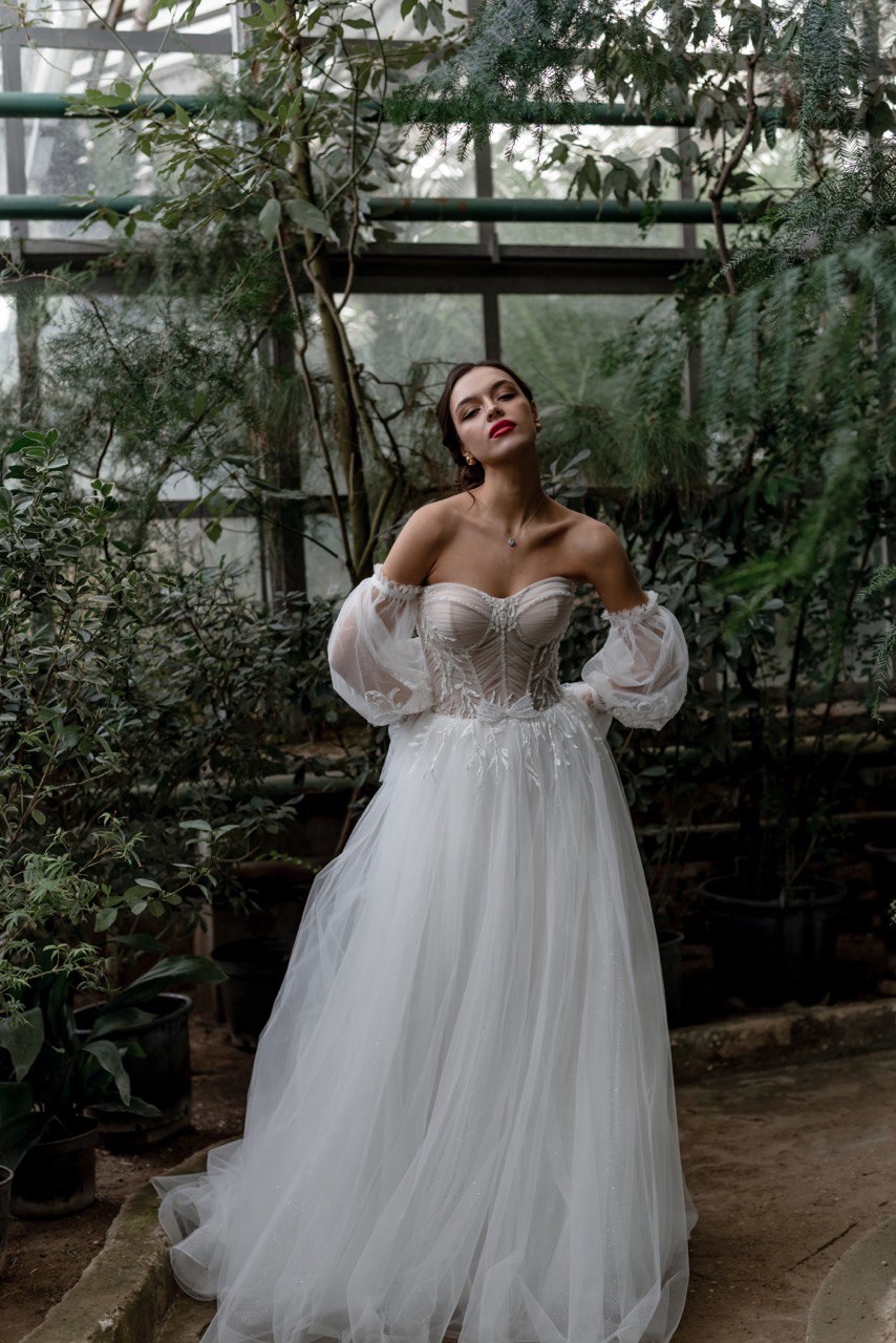 Ein Trend, der 2025 nicht zu übersehen ist, sind Statement-Ärmel. Von voluminösen Puffärmeln über elegante Glockenärmel bis hin zu abnehmbaren Ärmel-Designs – diese Details verleihen Deinem Brautkleid eine dramatische Note.