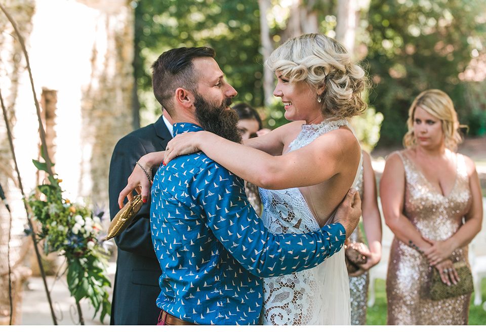 Bei einer anderen Variante könnt Ihr vordere Strähnen zwirbeln oder flechten und diese am Hinterkopf elegant mit Haarnadeln und Spangen feststecken. Eine zauberhafte Brautfrisur, die hervorragend zu einer Vintage- oder Boho-Hochzeit passt.
