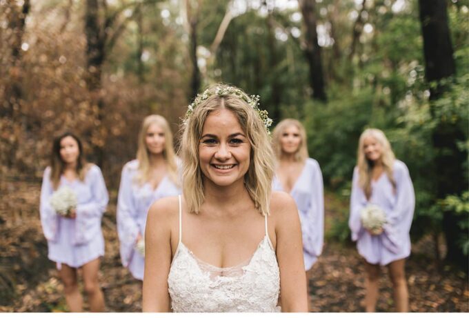 Entscheidet Ihr Euch für einen Blumenkranz oder eine andere Art Haarkranz, könnt Ihr Eure Bob-Frisur wunderbar offen tragen, die Haare leicht gelockt stylen. So zaubert Ihr eine Brautfrisur, die eigentlich zu fast jedem Hochzeitsstil passt.