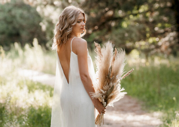Eine schöne und einfache Möglichkeit Euren Brautstrauß aufzubewahren ist es, bereits vorab einen Brautstrauß aus Trockenblumen zu wählen. Diesen könnt Ihr dann mit Haarspray einsprühen und in eine Vase stellen.