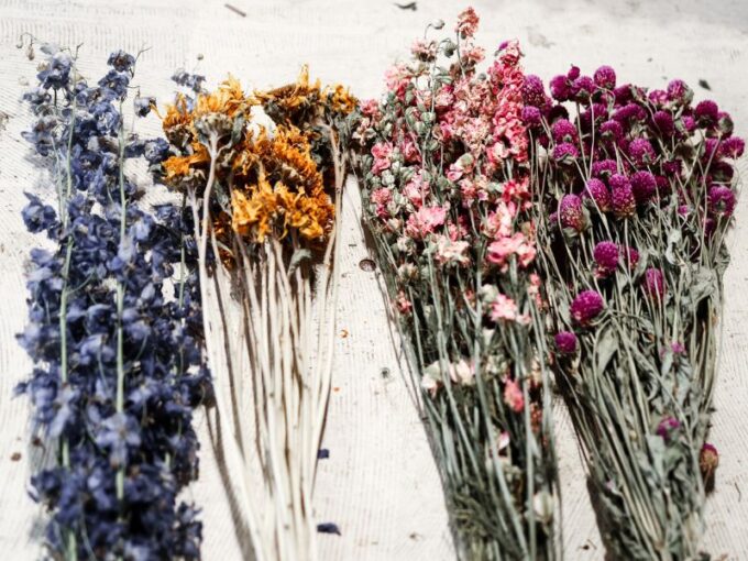 - Haarspray (optional): Zum Schutz der getrockneten Blüten und zur Farberhaltung.