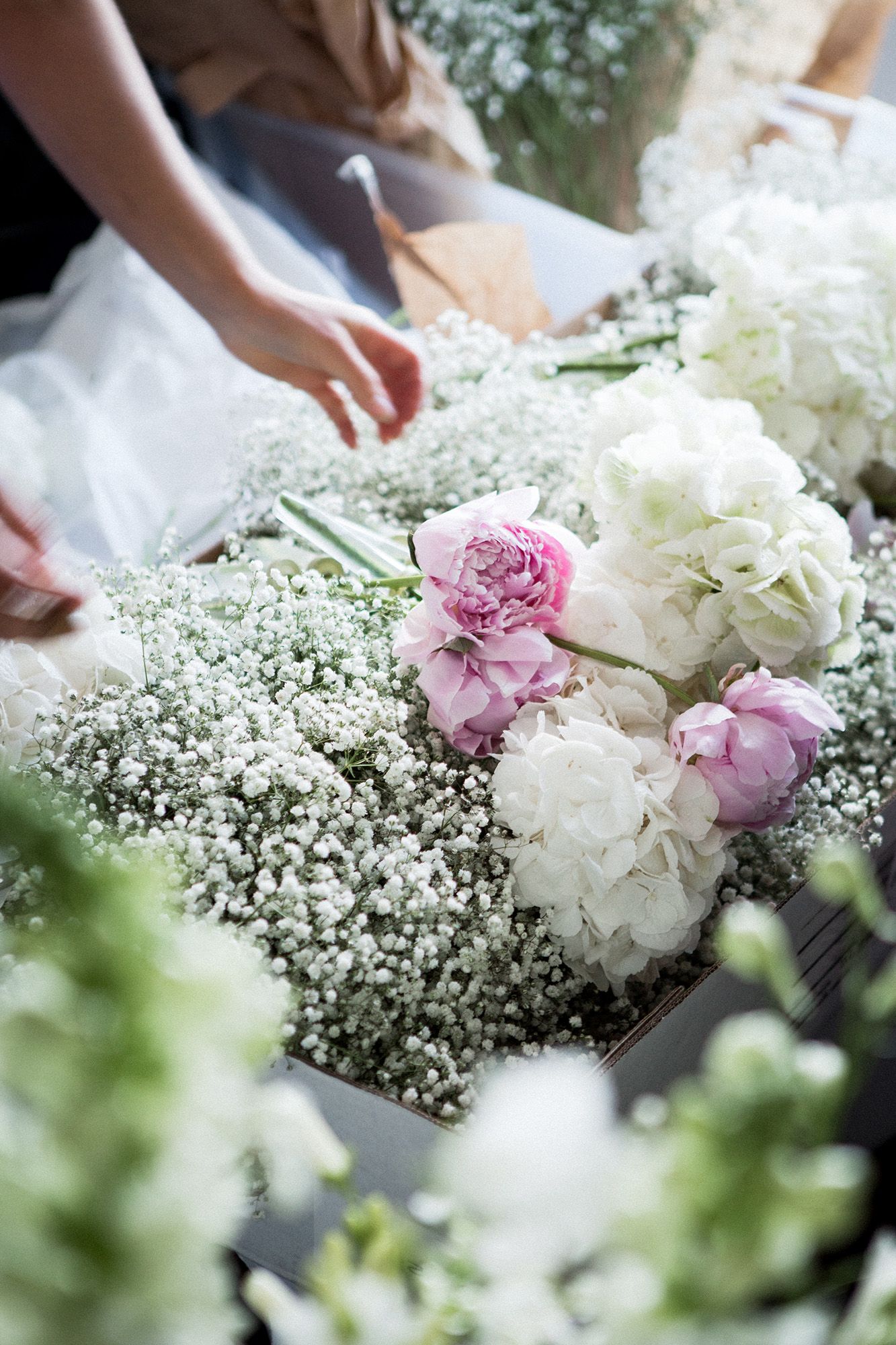 Wer nicht so ein Fan von Rosen ist, kann auch auf Nelken oder Margareten zurückgreifen. Auch ein Brautstrauß aus Hortensien kann wunderschön und unglaublich elegant aussehen.