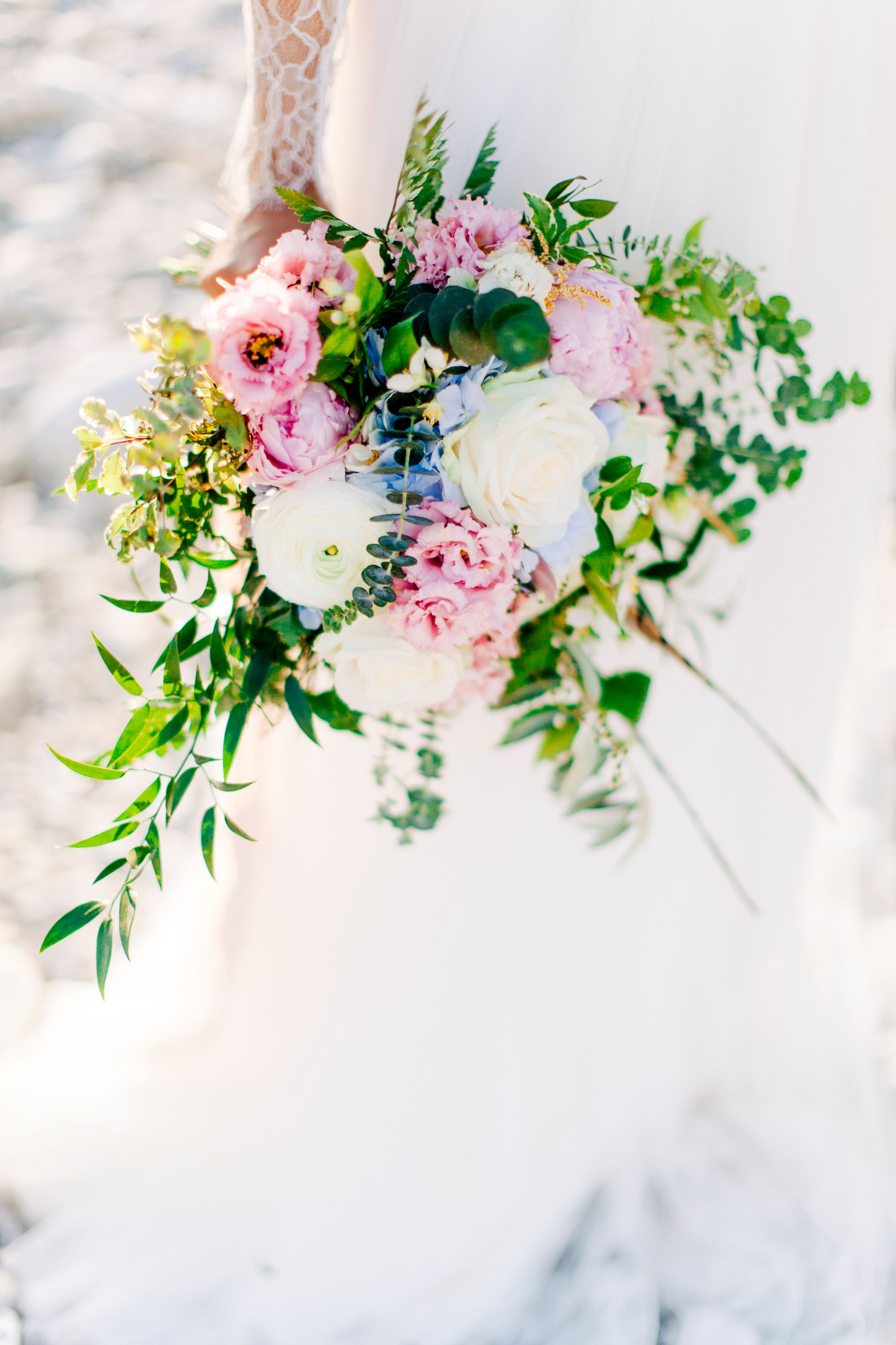 Für einen verspielten und mädchenhaften Brautstrauß kombiniert Ihr am besten Hochzeitsblumen in einem zarten Rosa mit zum Beispiel einem Farn, Salal oder Ruscus in einem saftigen und frischen Grün. Wunderschön sehen die rosa Brautsträuße auch mit Schleierkraut aus.