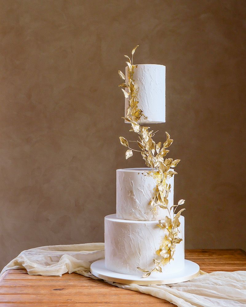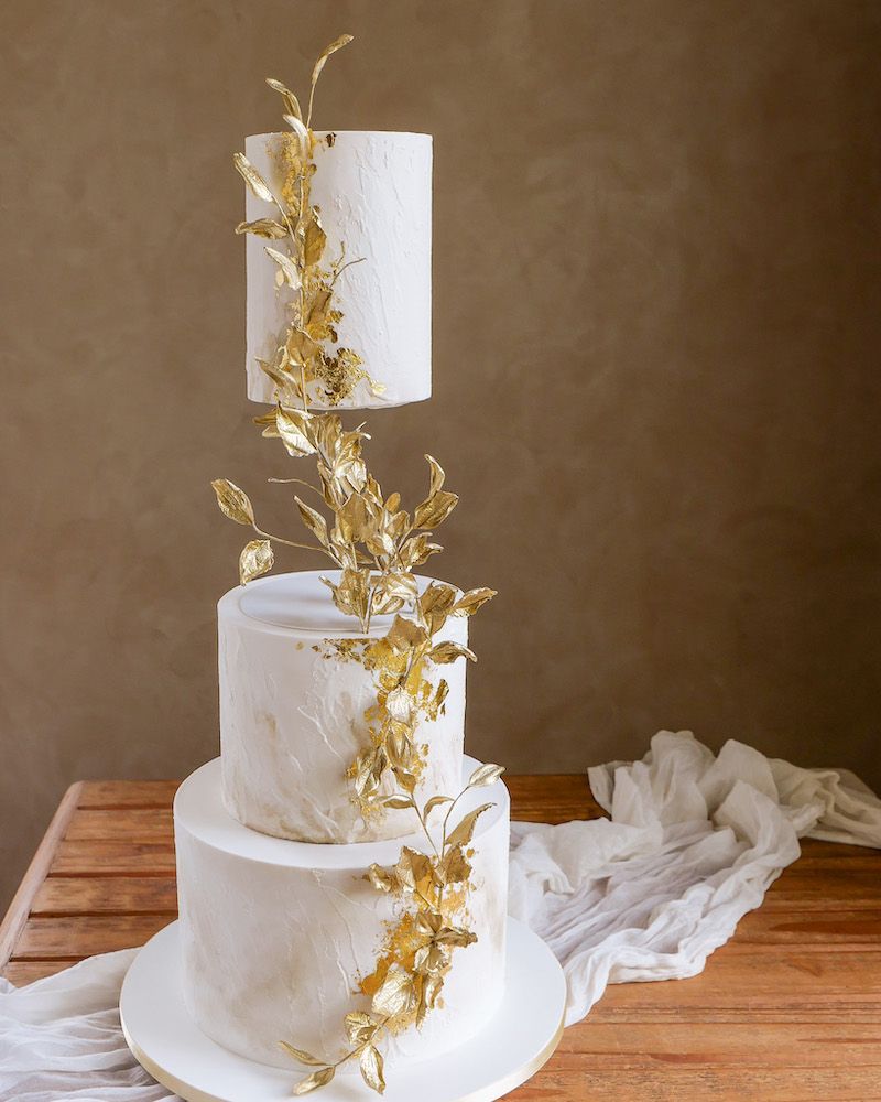Ein weiteres tolles Cake Design Team sind Teri und Debbie von @debbiecakeartistry. Sie zaubern ebenfalls wunderschöne Floating Cakes in einem eleganten Stil. Zum Beispiel den nachfolgenden weiß-goldenen Floating Cake. Diese Torte ist zurückhaltend und luxuriös zugleich und garantiert ein absoluter Hingucker auf jeder Hochzeit.