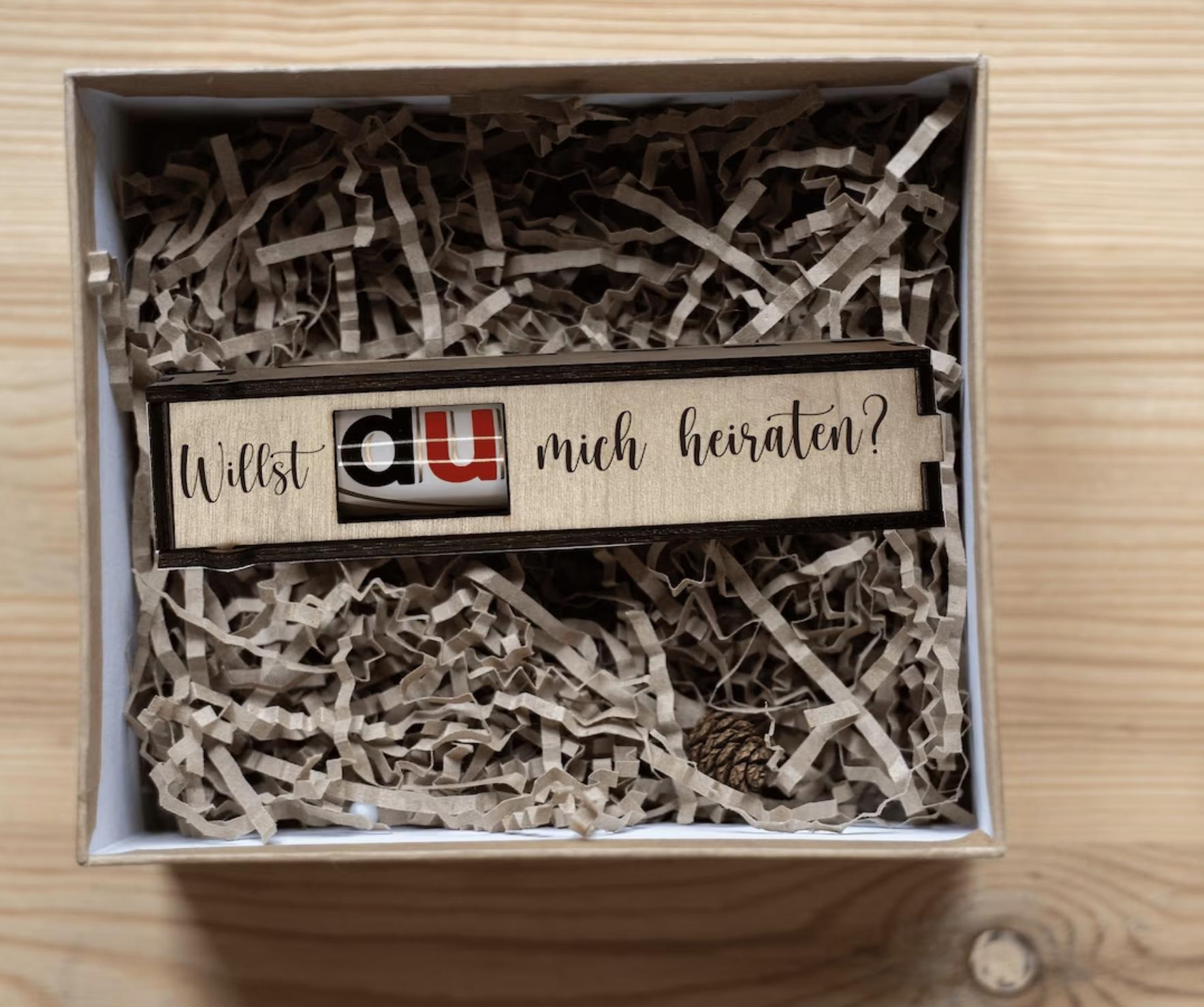 Dieses Puzzle ist schnell gelöst und mit einer ganz persönlichen Frage versehen. Eine kreative Idee für einen außergewöhnlichen Heiratsantrag!