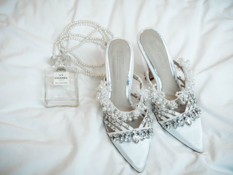 - Farbe und Stil: Die Brautschuhe sollten zum Hochzeitskleid und zum allgemeinen Look der Braut passen. Klassische Farben wie Weiß, Ivory und Creme sind zeitlos, während farbige Schuhe Akzente setzen können.
