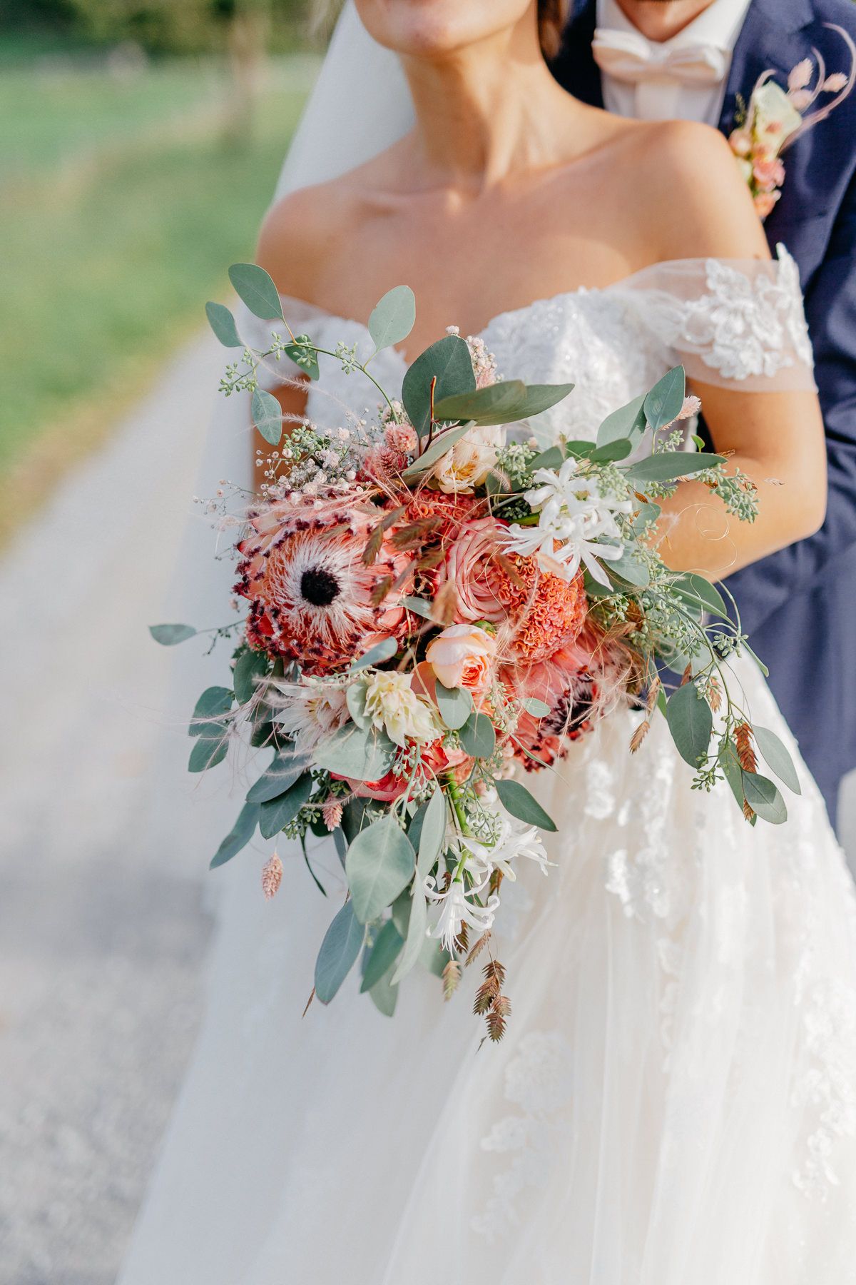 Traditionell wird der Brautstrauß in der rechten Hand getragen. Aber heutzutage gibt es keine strikten Regeln mehr. Es ist wichtiger, dass Du Dich wohlfühlst und den Brautstrauß sicher halten kannst. Wenn Du Dir immer noch unsicher bist, probiere es einfach aus und finde heraus, welche Hand Dir am besten passt. Am Ende zählt nur, dass Du Deinen großen Tag unbeschwert genießen kannst!