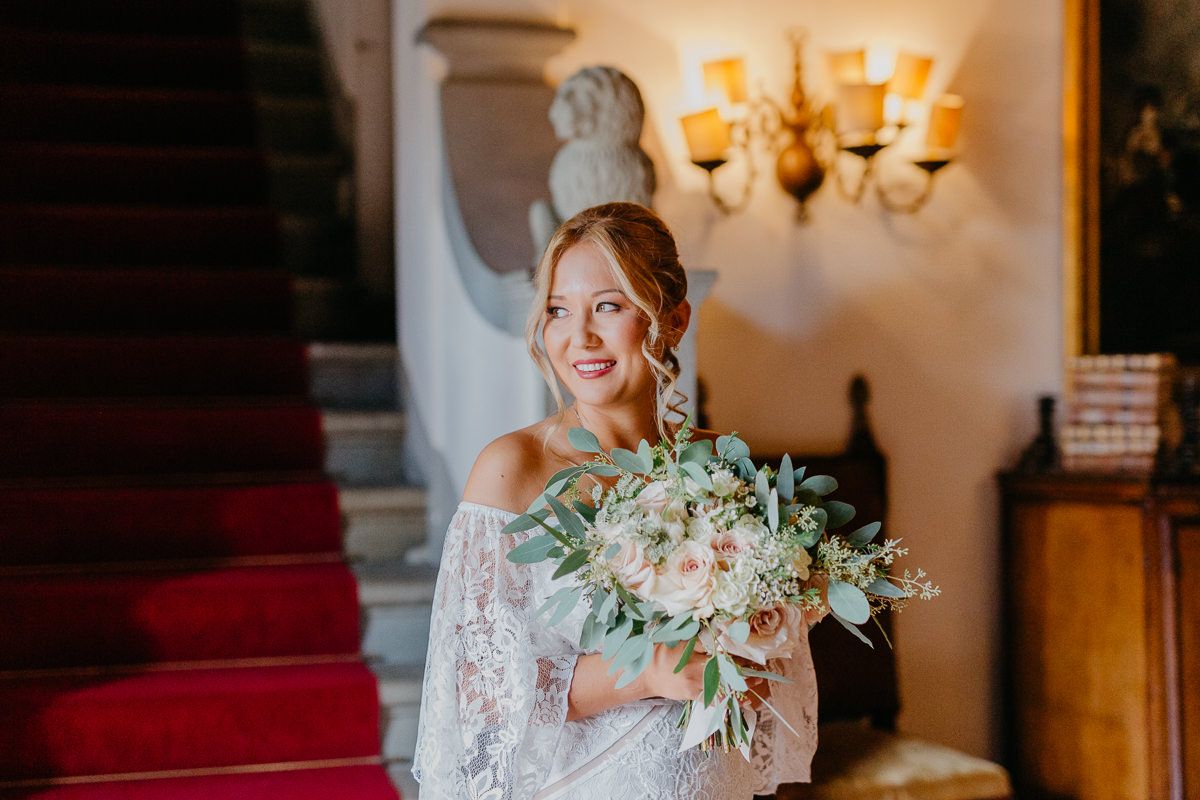 Angenehme Höhe: Achte außerdem darauf, dass Du Deinen Brautstrauß in einer angenehmen Höhe hältst. Der Brautstrauß sollte nicht zu hoch oder zu tief gehalten werden, sondern etwa auf Höhe Deiner Taille. Wenn Du den Brautstrauß zu hoch hältst, dann kann dies schnell unnatürlich aussehen.