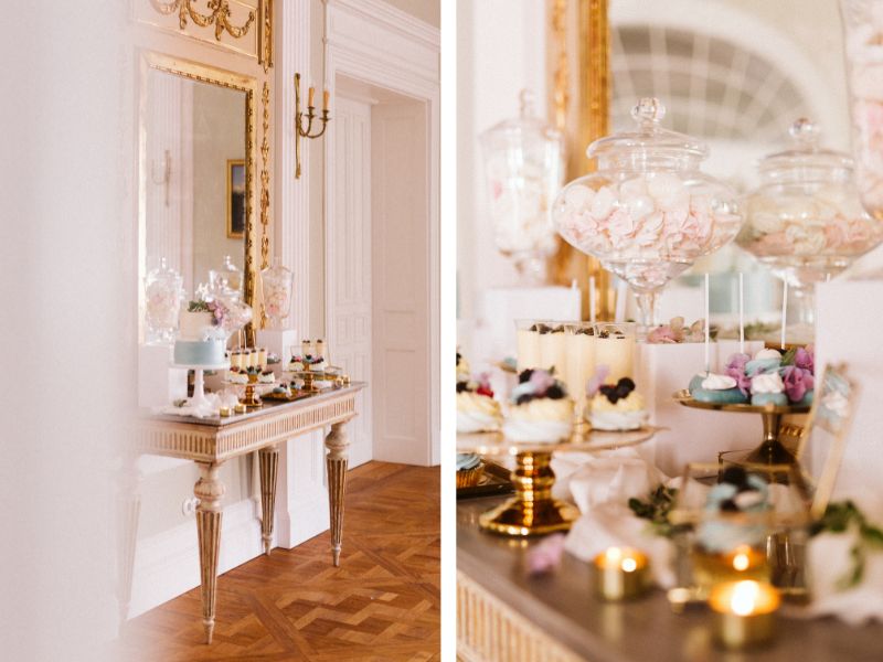 Eines der Highlights ist, dass Ihr es immer exklusiv für Euch und Eure Gäste reservieren könnt. Das bedeutet, keine anderen Veranstaltungen stören Euren großen Tag. Das Schlosspersonal steht Euch zur Seite, um das Menü nach Euren Wünschen zu personalisieren und dabei Rücksicht auf Allergien und spezielle Ernährungsbedürfnisse zu nehmen.