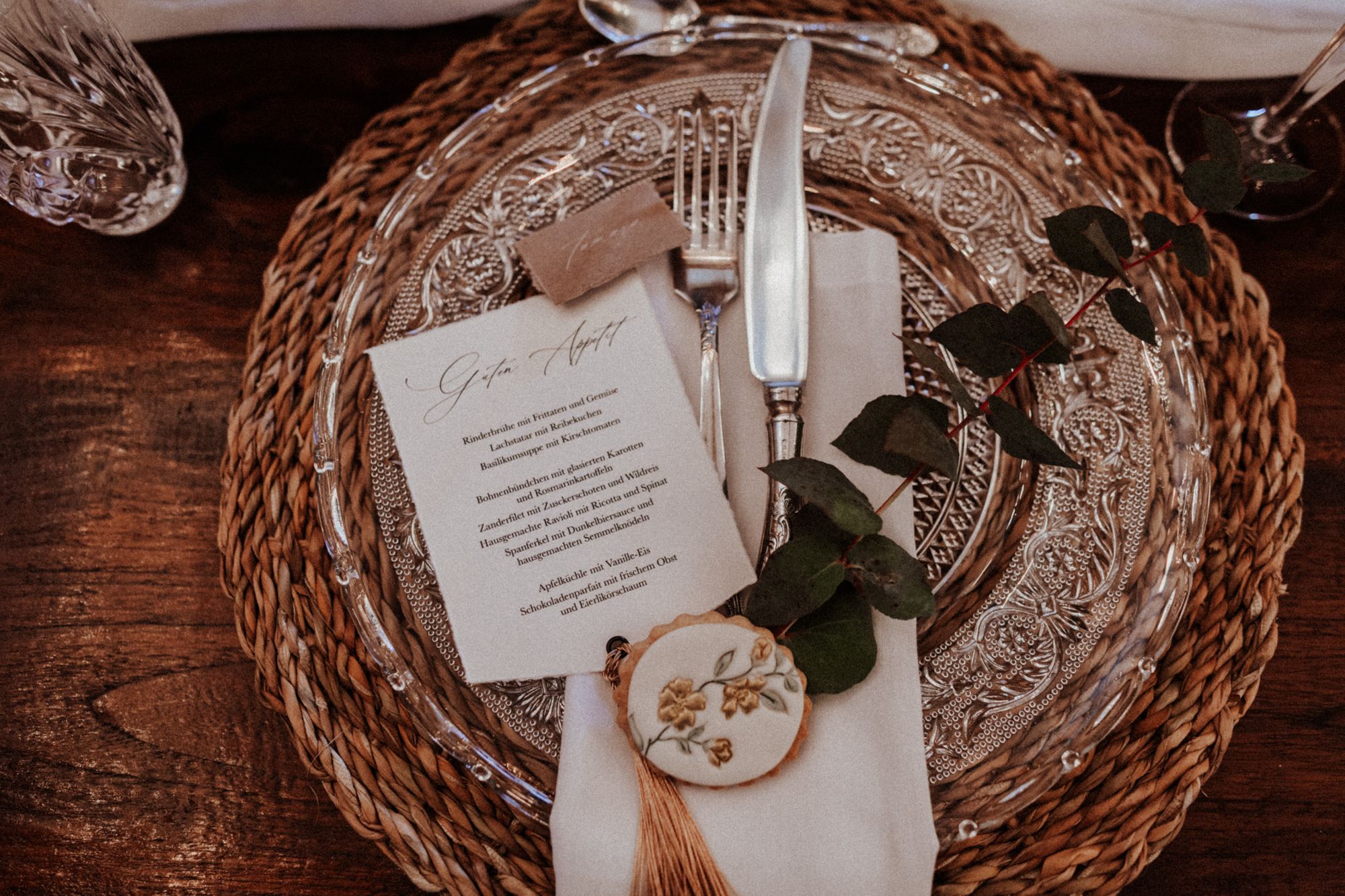 Die Falttechnik und Accessoires hängen auch davon ab, wie viel Ihr bei einem einzelnen Gedeck integrieren möchtet. So lohnt sich beispielsweise eine einfachere Technik mit weniger Accessoires, wenn Ihr zusätzlich eine Süßigkeit und eine Karte mit dem Menü auf jeden Teller legen möchtet. Testet gerne zu Hause oder eventuell bei Eurer Location verschiedene Varianten - schließlich soll die Tafel auch nicht zu überladen wirken.