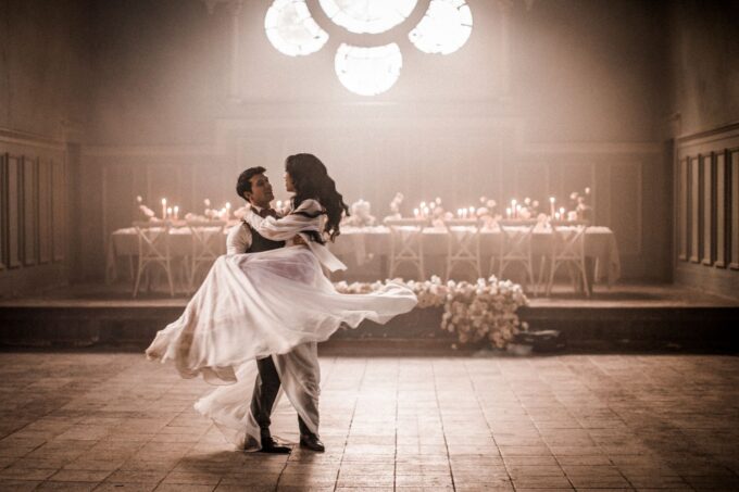Der "Grüne Saal" der Beelitzer Heilstätten lädt am Abend auch wunderbar zum gemeinsamen Tanzen und Feiern ein und so dreht das Brautpaar hier seine Kreise inmitten der magischen Location.