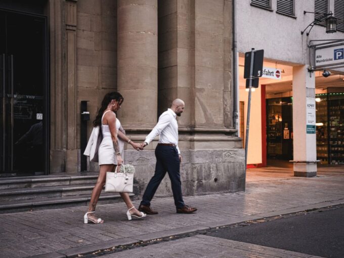 In den Straßen von Würzburg: Diese Kulisse zeigt, dass wahre Romantik an jedem Ort entstehen kann – selbst im urbanen Stadtleben. Für Paare, die den modernen Stil lieben, ist dies eine wunderbare Inspiration für eine authentische Hochzeit, die das aufregende Flair der Stadt perfekt einfängt.