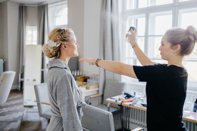 Auch solltet Ihr darauf achten, dass die Hochzeitsfrisur zu eurem Kleid und auch dem restlichen Styling zum Beispiel dem Schleier passt. Nicht jeder Look passt gut zu jeder Haarlänge und jedem Haartyp deswegen solltet Ihr in jedem Fall ein Probestyling machen. Hier könnt Ihr dann sehen ob der Brautlook wirklich eurer Vorstellung entspricht und ob die Haarpracht auch gut zu dem Brautkleid passt.
