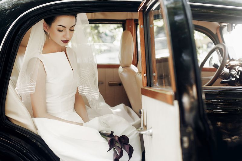 Auch der passende Brautstrauß und die Brautfrisur sollten auf das Kleid abgestimmt und mit Bedacht gewählt werden. Hast Du Dich zum Beispiel für ein Vintage Kleid im Boho-Stil der 70er Jahre entschieden, kannst Du Deine Brautfrisur toll durch einen Blumenkranz im Bohemian-Stil ergänzen.