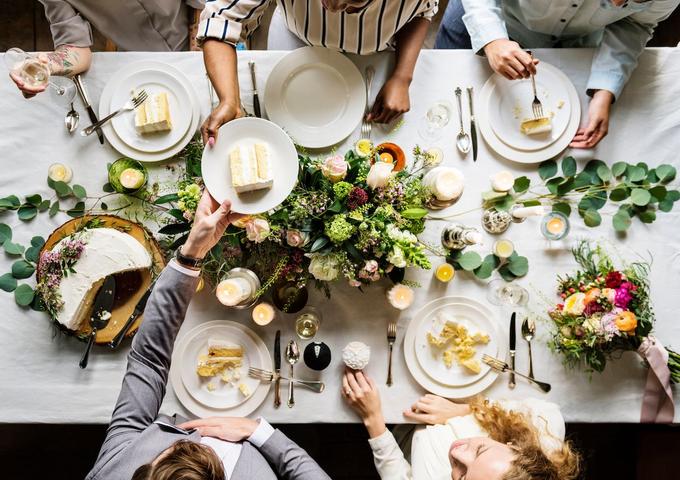 Ein Buffet eignet sich möglicherweise noch besser als ein mehrgängiges Menü für ein vegetarisches Hochzeitsessen. Egal ob kalt, warm oder eine Kombination aus beiden Varianten, bei einem Hochzeitsbuffet wird von allem probiert.