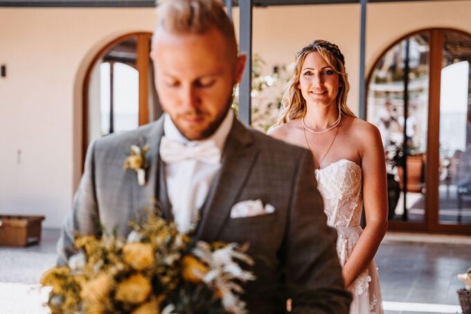 Dieser intime Moment abseits der Hochzeitsgesellschaft ist voller Überraschung, Sehnsucht und Liebe. Daher kann dieser Augenblick sicherlich das ein oder andere Tränchen hervorrufen. Durch den First Look wird der Moment, in dem der Bräutigam die Braut das erste Mal sieht, zu einem privaten und emotionalen Erlebnis.