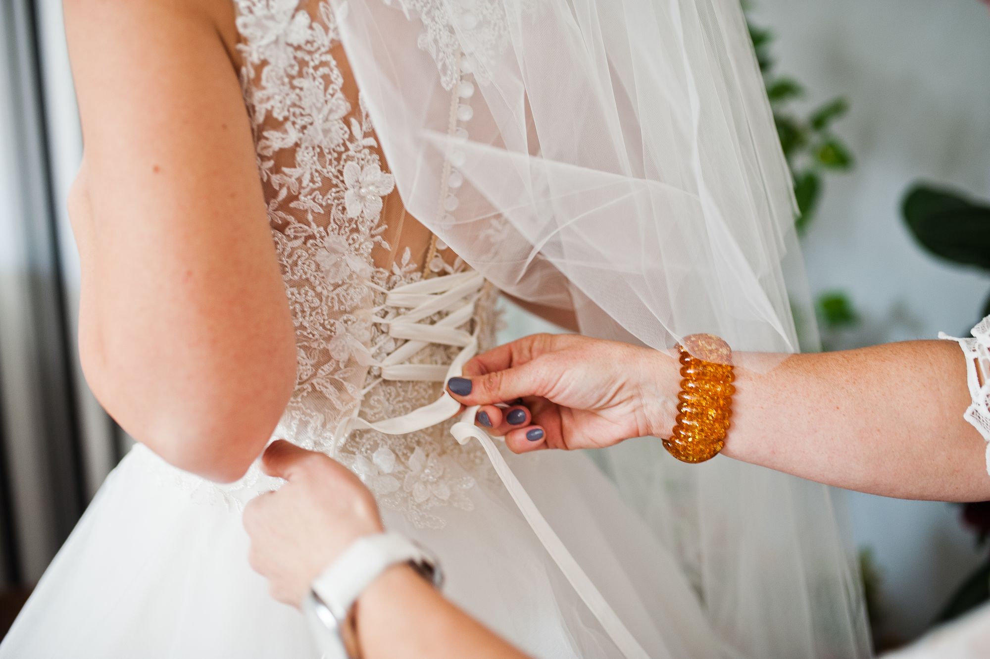 - Hochzeitsoutfits und Trauringe finden → Trauzeugin oder die Brautmama zur Brautkleidanprobe mitnehmen. So kann diejenige sich anschauen, wie das Brautkleid geschlossen wird und Euch beim Anziehen am Hochzeitstag helfen.