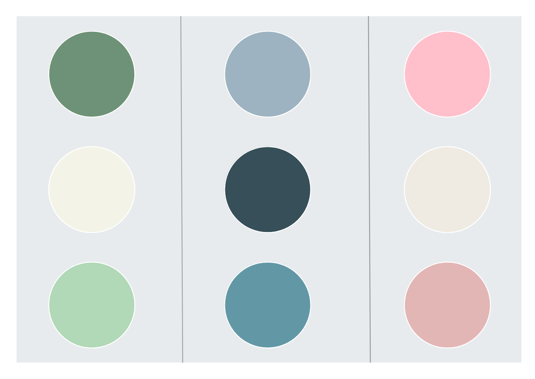 Wählt Euch eine Farbpalette von 3 Farben, die Ihr für die Hochzeitsdeko, aber auch für Papeterie und die Kleidung der Trauzeugen wählt.