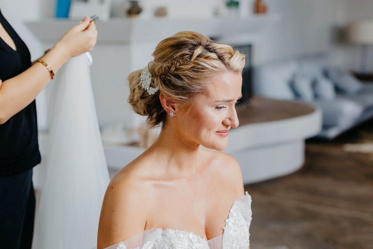 Wenn Du Dich zu Hause oder in Deiner Location stylen lassen möchtest, berechnet der Friseur meist auch die Anfahrtskosten. Viele Bräute nehmen die zusätzlichen Kosten aber gerne in Kauf. Der große Vorteil: Du kannst die Stunden vor der Trauung mit Deinen Brautjungfern und Trauzeugen beim gemeinsamen Frisieren und Ankleiden verbringen.