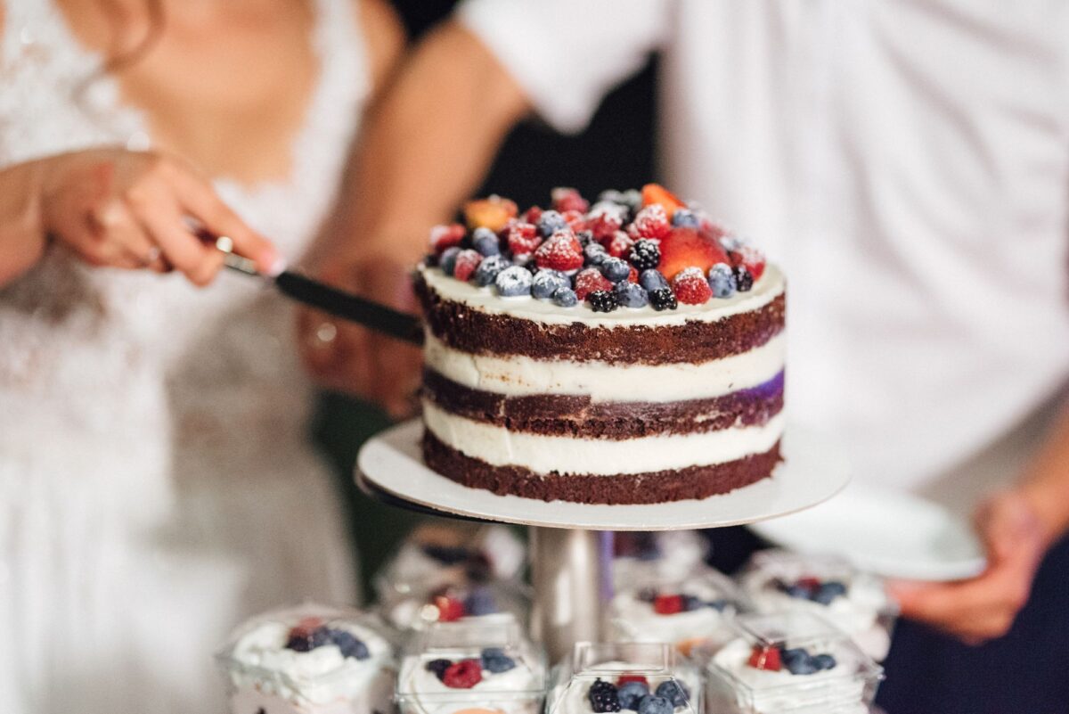 Die Hochzeitstorte ist ein Highlight der Feier. Die Kosten für eine individuell gestaltete Torte liegen zwischen 400 Euro und 900 Euro. Hier kann durch einfache Designs und kleinere Torten gespart werden.