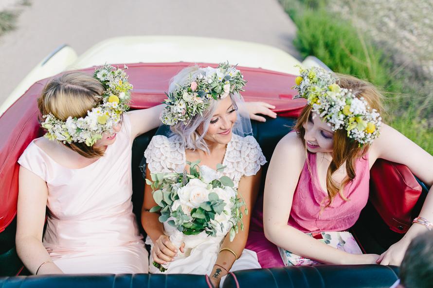 Braut mit zwei Trauzeuginnen