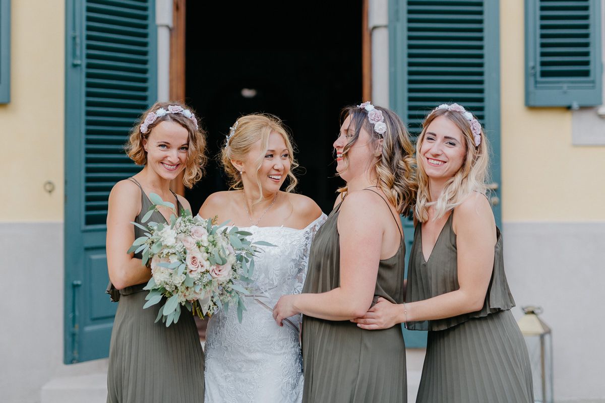 Braut mit drei Trauzeuginnen
