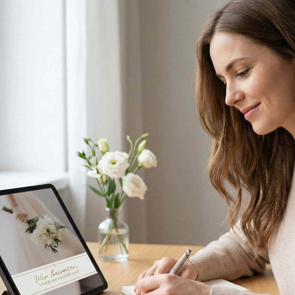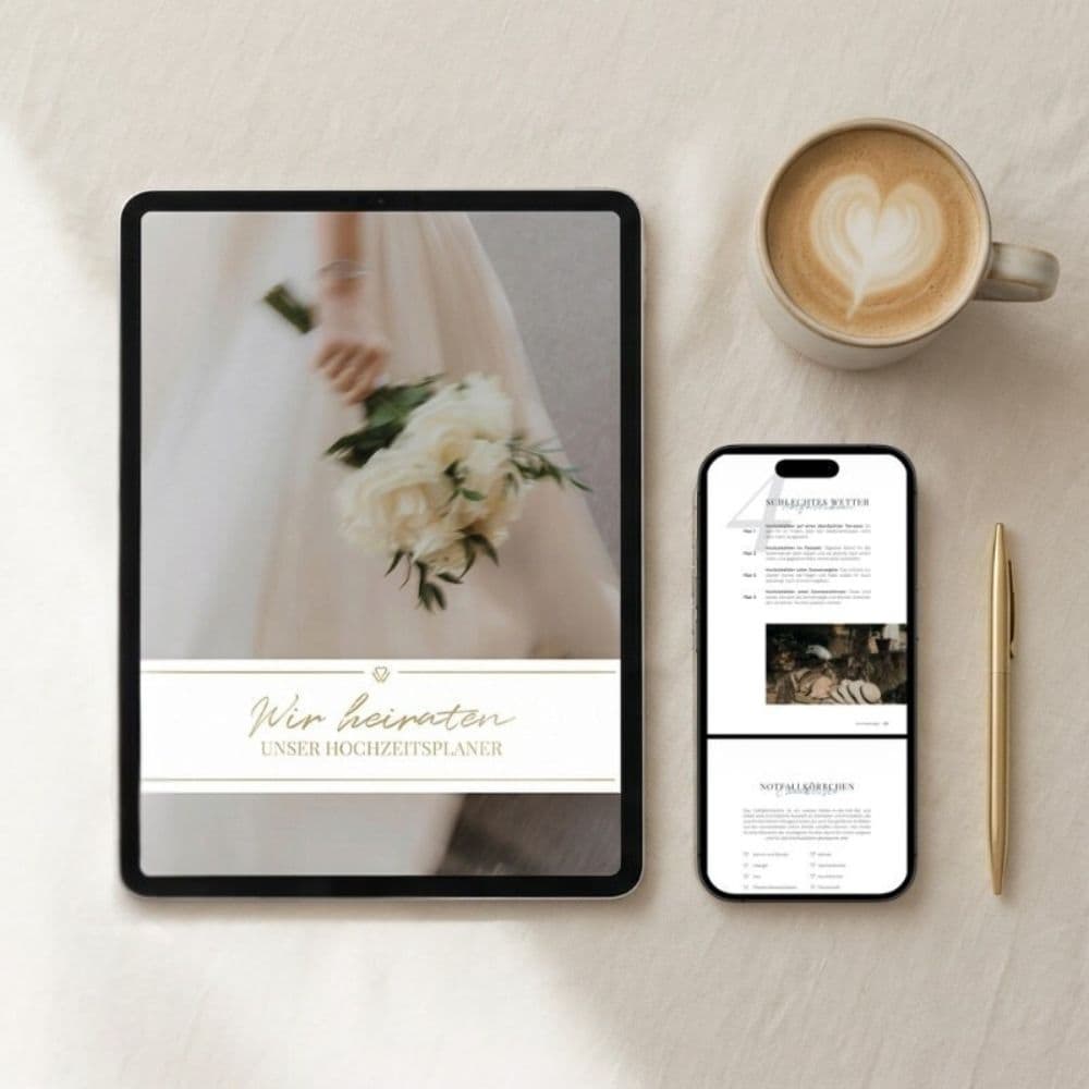 Der Digitale Hochzeitsplaner begleitet euch Schritt für Schritt durch die komplette Hochzeitsplanung.