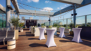 Auf der 300 m² Dachterrasse erlebt Ihr einen fantastischen Ausblick über die Innenstadt. Unser Außenbereich eignet sich zudem ideal für freie Trauungen, Sektempfänge oder Gourmet-BBQs im Rahmen Eurer Feierlichkeiten.