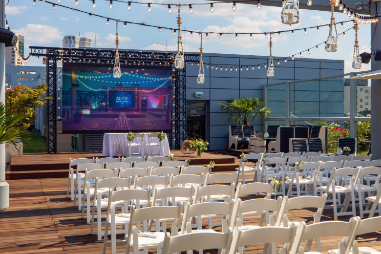 In der Nähe zum Ku´damm beeindruckt das ALICE Rooftop & Garden im 5. Obergeschoss des neuen LIVING BERLIN als exklusive Hochzeitslocation in bester Citylage.