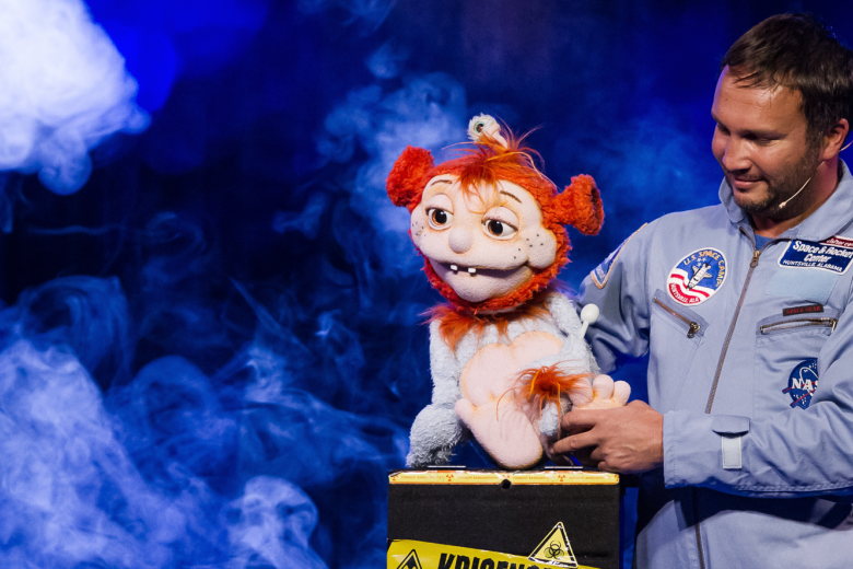Mit der Unterstützung liebevoll gestalteter Puppen „aus einer fernen Galaxie“ und raffinierten magischen Elementen ist es mir ein Vergnügen, Ihre Hochzeitsgäste 20 bis 45 Minuten lang in eine bunte Varieté-Welt zu beamen. Dabei werden Ihre Verwandten und Bekannten Teil der Show, erleben hautnah erstaunliche Kunststücke und lernen charmante Außerirdische kennen. Denn das Programm findet nicht nur frontal von der Bühne aus statt, sondern wird durch gelegentliche Ausflüge ins Publikum aufgelockert.