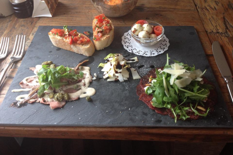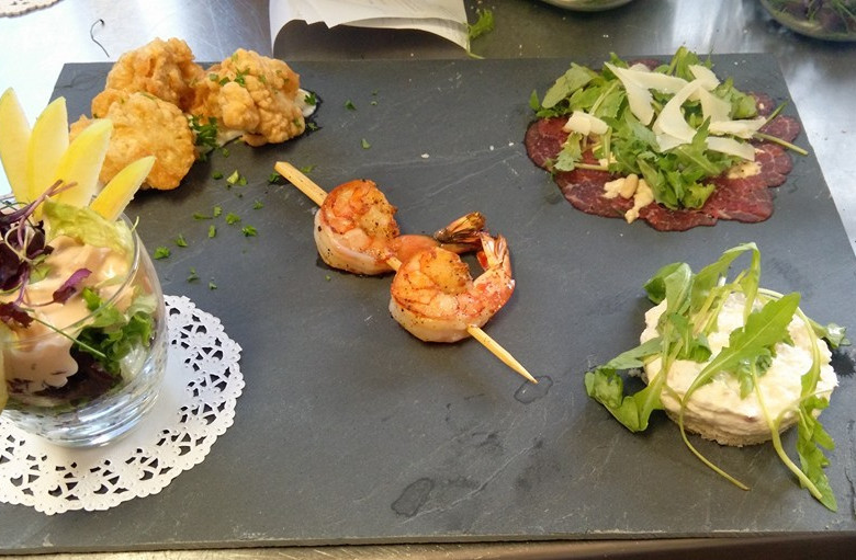 Toskanische Zwiebelsuppe *** Mariniertes Gemüse(Karotten, Auberginen Zucchini Paprika) Tomate –Mozzarella Basilikum Venezianischer Kartoffelsalat Vitello –Tonato(Kalbfleisch in Thunfischsauce) Toskanischer Brotsalat *** Melone mit Schinken Carpaccio vom Rind mit Parmesan Sommersalat mit Balsamicozwiebeln Verschiedene Dips und Aufstriche dazu ofenfrisches Stangenweißbrot *** Linguini con aglio oilo(scharf) Penne mit Steinpilzen Gemüse-Nudelpfanne in Käsesauce Lasagne ala Bolognese *** Scampis mit Kräutern, Tomaten und Knoblauch gebraten Frische Calamari friti, Gebratene Edelfische mit Gemüsewürfel Involtini(Kalbfleischbällchen im Speckmantel) Kartoffelauflauf und Spinatgratin *** Tiramisu , Beerengrütze Apfeltörtchen mit marinierten- Erdbeeren Gebackene Creme auf Marillenkompott
