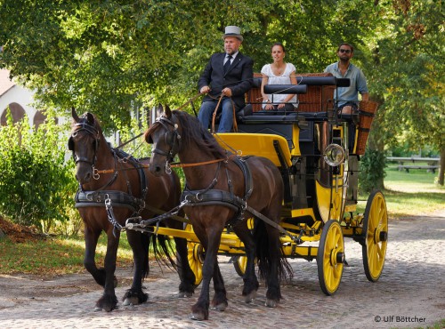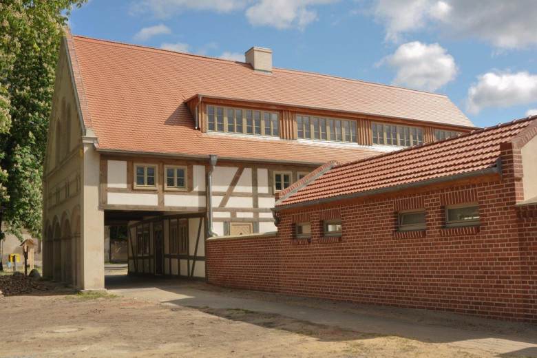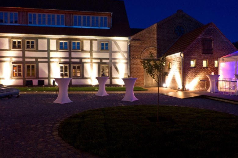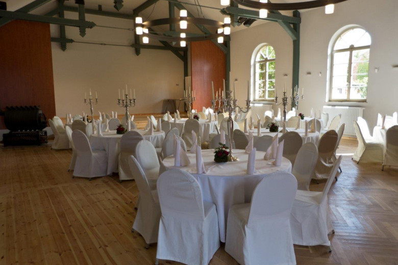Obwohl die Location nur 25 Minuten von Berlin entfernt ist, ist nichts von der Großstadthektik zu spüren. Die Location ist ideal für alle, die gerne in ruhiger Lage feiern wollen, ohne hunderte von Kilometer zu fahren. Der liebevoll restaurierte Vier-Seiten-Hof bietet neben dem weitläufigen Außengelände einen modern ausgestatteten 100m² großen Festsaal im Jugendstil. Der Parkettboden und die hohen Fenster verleihen dem Festsaal ein feierliches Ambiente. Eine Bühne lässt sich je nach Veranstaltung flexibel als Tanzbereich oder Präsentationsfläche nutzen. Angeschlossen an den Saal sind ein Schankraum mit zum Saal hin offenem Tresen und ein Buffetraum. Hochzeiten auf der idyllischen Wiese hinter dem Hof sind ebenso möglich wie Kutschfahrten.