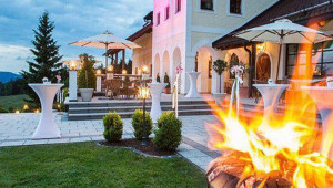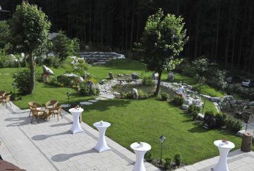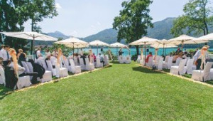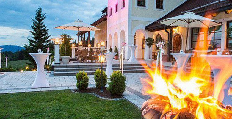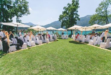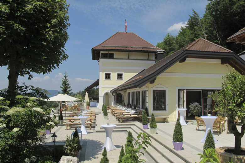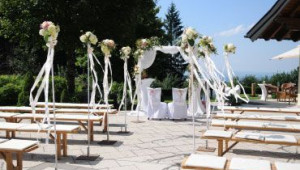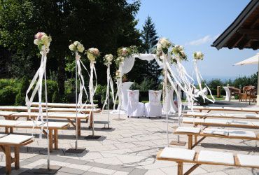 Mit dem Bergmassiv im Rücken, blicken Sie von der Terrasse ins Tal und erleben einen Sonnenuntergang, wie er gemalt nicht schöner sein könnte. Heiraten Sie ganz oben! Wo sonst?