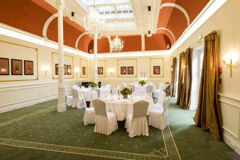 Stuckverzierungen und gläserne Oberlichter, Deckengestaltung mit Intarsien und Flügeltüren – nahezu einmalig in Hamburg sind unsere Räumlichkeiten im Palais Esplanade. Auch standesamtliche oder kirchliche Trauungen sind hier möglich.
