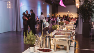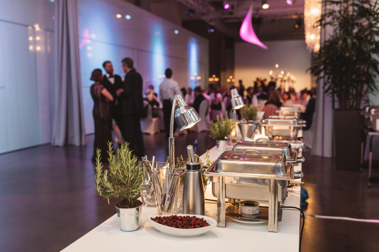 bis 8 Stunden (z.B. 18:00 - 02:00 Uhr) Kalkuliert für 90 Erwachsene und 5 Kinder Preis pro Person inkl. • Raummiete • Bereitstellungskosten und Grundreinigung • Galabestuhlung mit Tischwäsche • Mischbestuhlung im vorderen Hallenbereich (Empfangsbereich) • Buffettische und Theke • Dessert Ausstattung der Eventbox 3 • Ausstattung Außenbereich • Standard Licht und Audiotechnik • Objektbetreuung und Standby Reinigungskraft (WC) • Service und Garderobenpersonal • Alkoholische Getränkepauschale inkl. Equipment • Sektempfang • Abwechslungsreiches Buffet • Projektleitung im Vorfeld